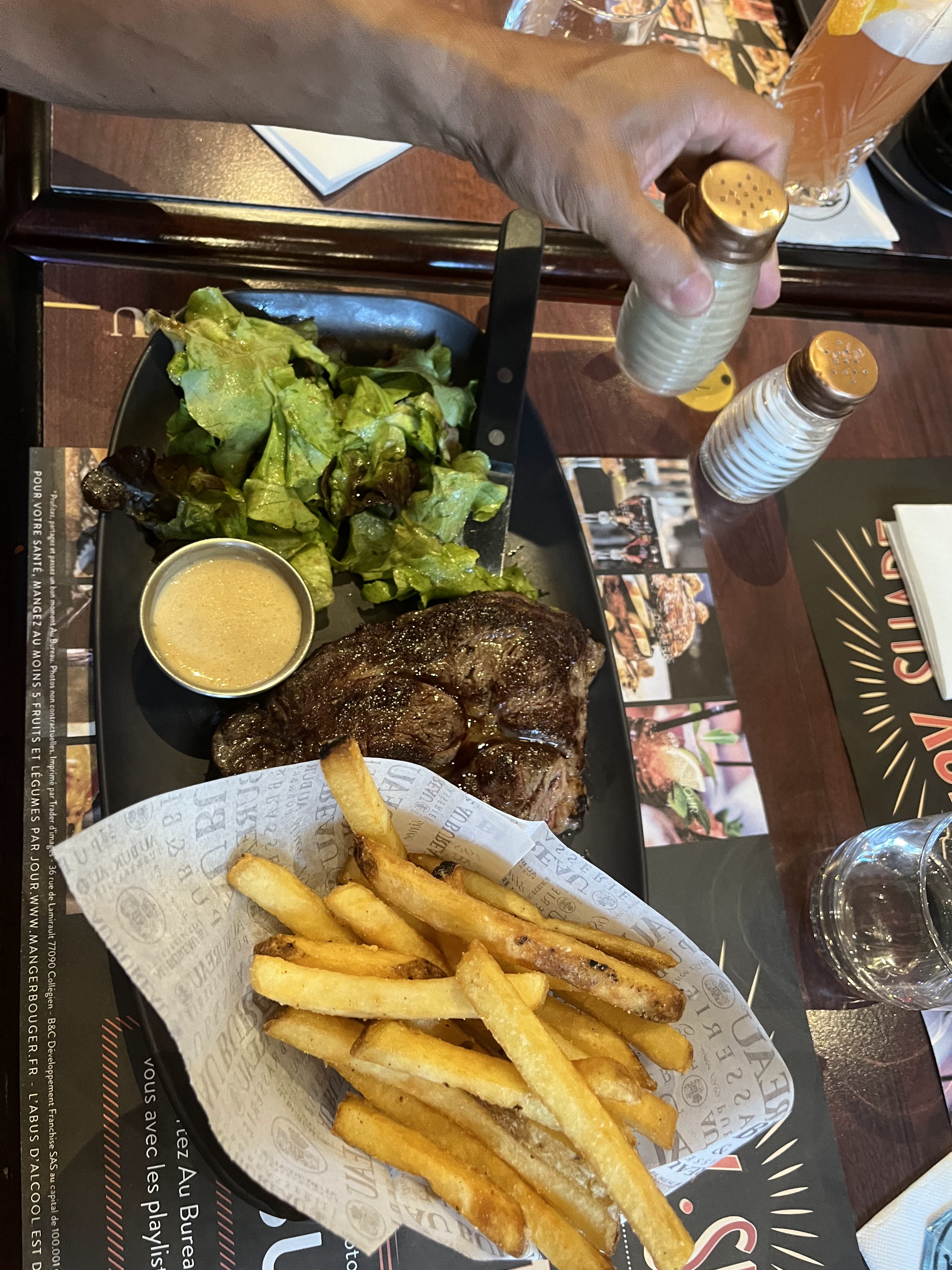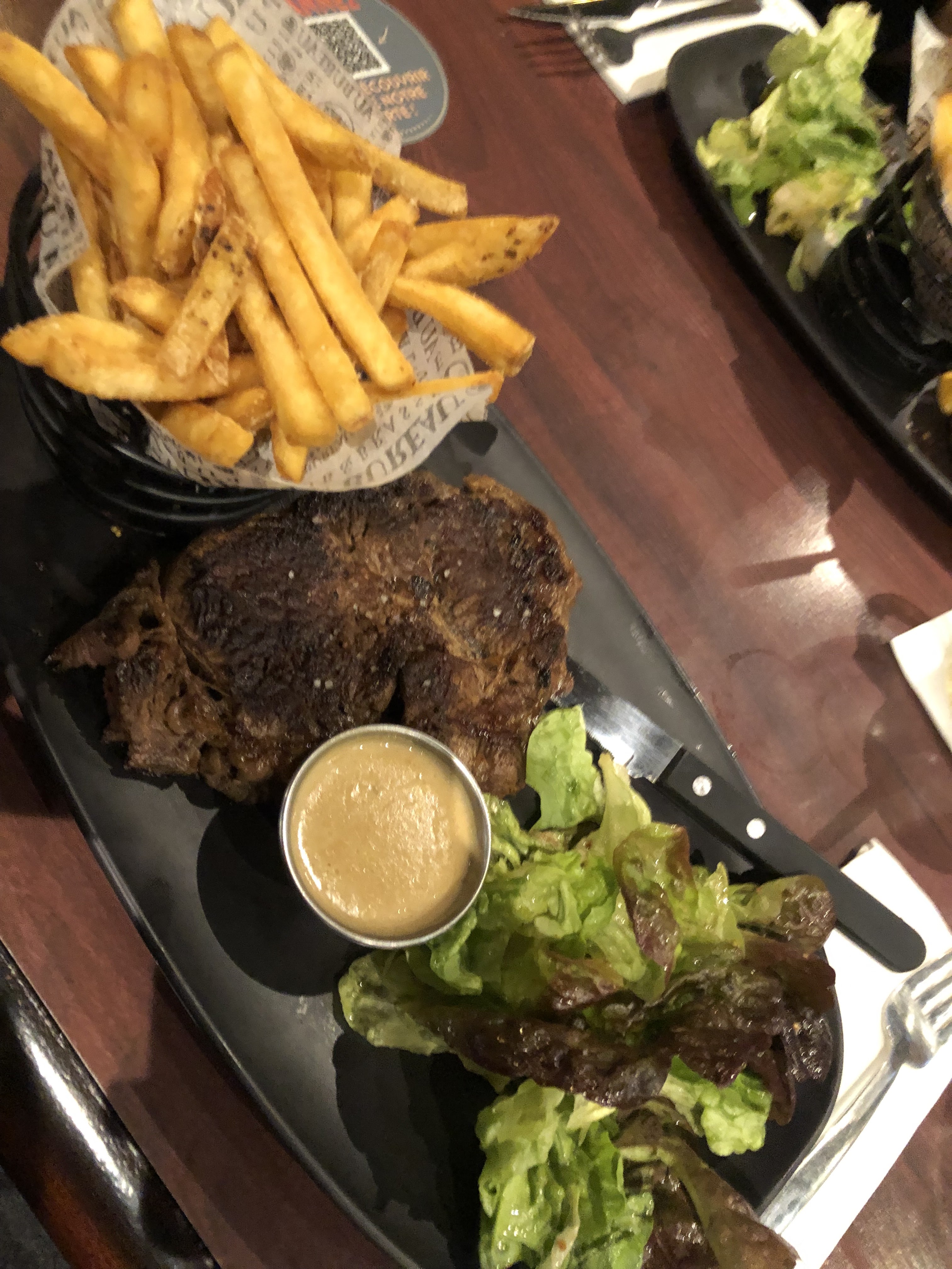 Une chaîne que l’on connaît bien notamment pour son décor typique, ce restaurant est sympa, et sincèrement les serveurs et serveuses au top, présents, sympa et qui prennent le temps de dialoguer et échanger, voir de rigoler, un plus même lorsque je leur demande un dessert de ma composition et qu’ils le font.. voilà un service que l’on ne trouve pas forcément dans un restaurant traditionnel et encore moins dans une chaîne… rien à dire , entrée, entrecôte cuite parfaitement et une bonne viande, en résumé, rapide, convivial efficace.. il suffit peut être pour lés détracteur juste d’être aimable et le personnel vous le rendra.. 👍