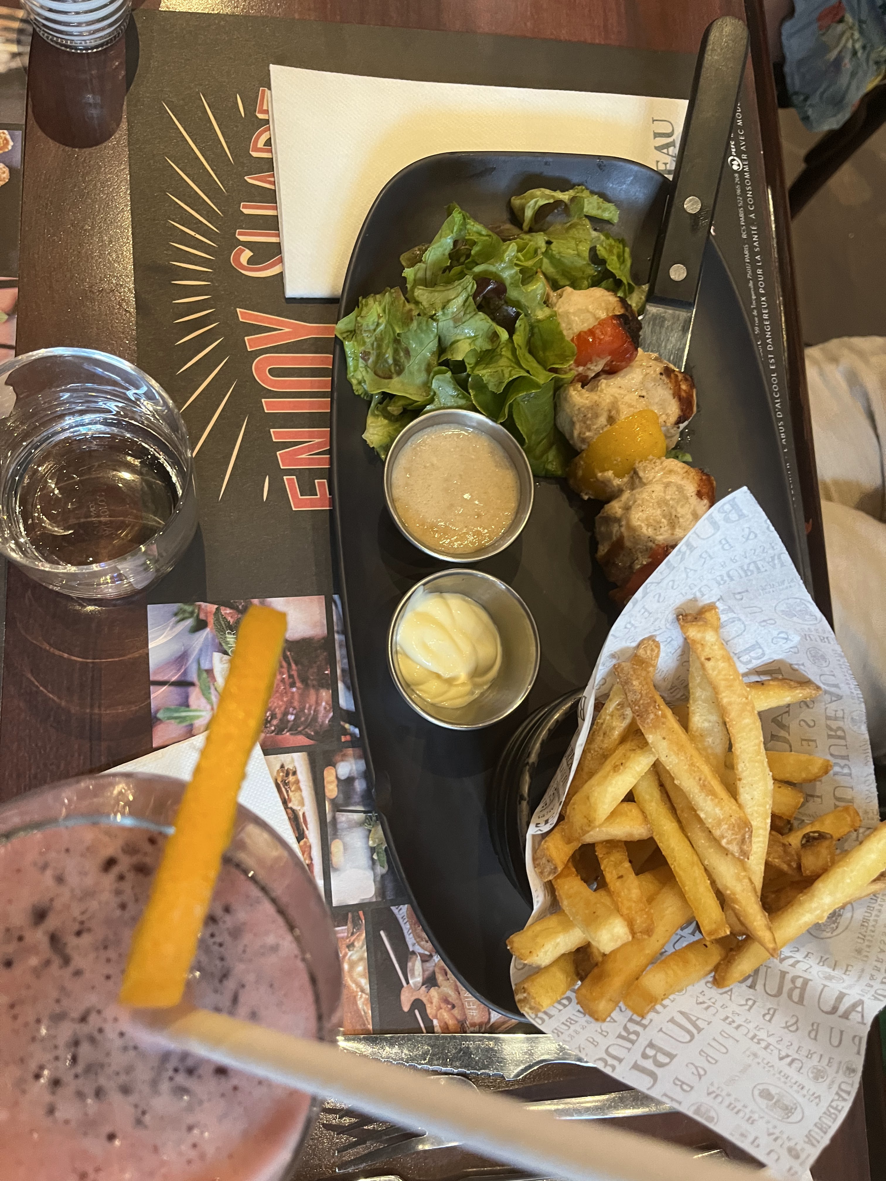 Chaîne très connue, cependant on a trouvé qu’il y avait un manque d’organisation dans l’équipe, ils étaient entrain de courir partout alors qu’il n’y avait pas grand monde et nous avons beaucoup attendu, c’est dommage car certaines personnes très aimables. En revanche, d’autres tournaient en rond sans rien faire. Concernant les plats, nous n’avons pas vraiment apprécié: j’ai pris une salade chèvre chaud (j’ai eu un mini morceau de fromage ????), un burger plus ragoûtant qu’appétissant… je vous laisse également les images avec. Je pense que nous ne sommes pas passés au bon moment.