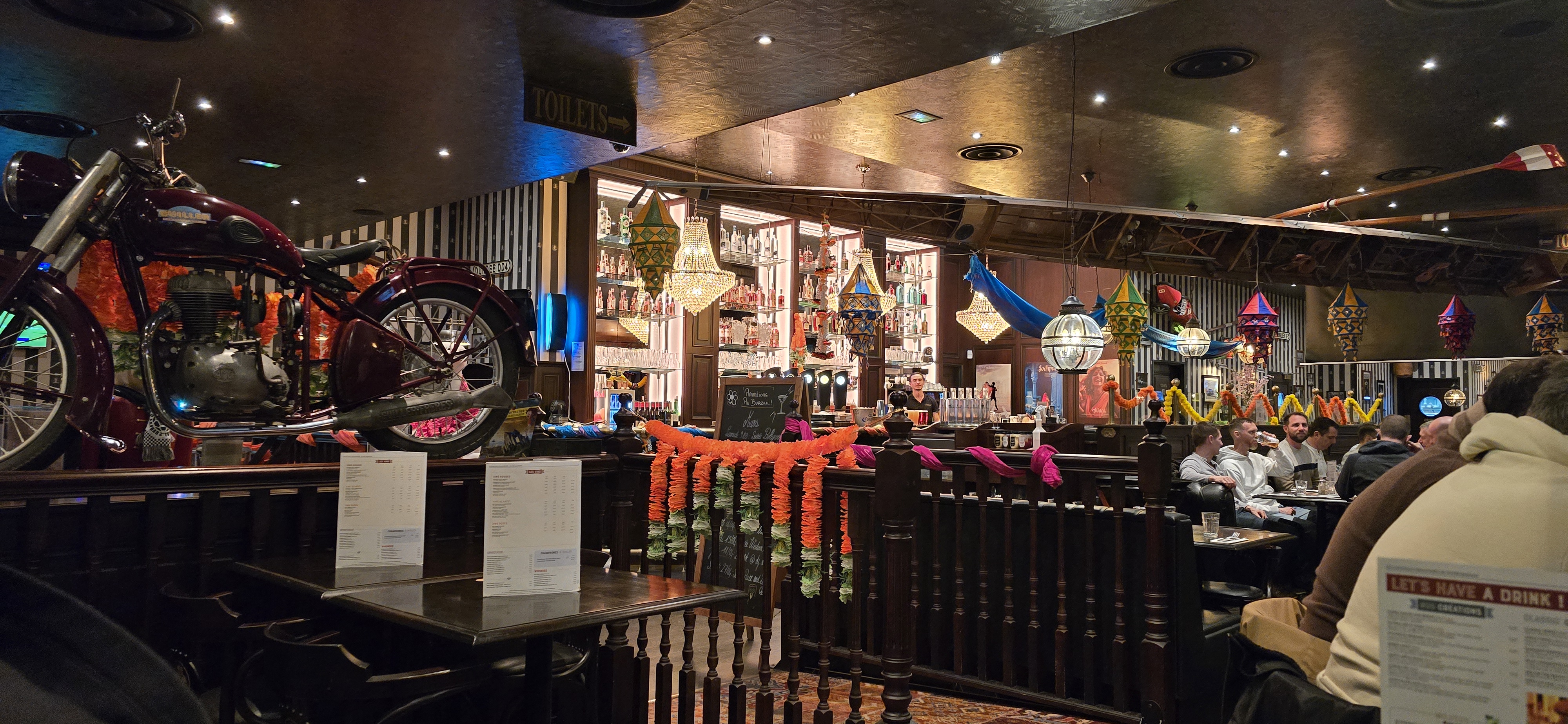 Venu prendre un verre avec des amis pour la Saint-Patrick ☘️ nous avons passés un super bon moment ! L’ambiance était au top, salle décorer à sont thème du jours 🎩 ! Les employés on tous jouer le jeu ! Je tiens à souligner le fait que Arnaud était au top du top ! Souriant, bienveillant et des bretelles incroyable.