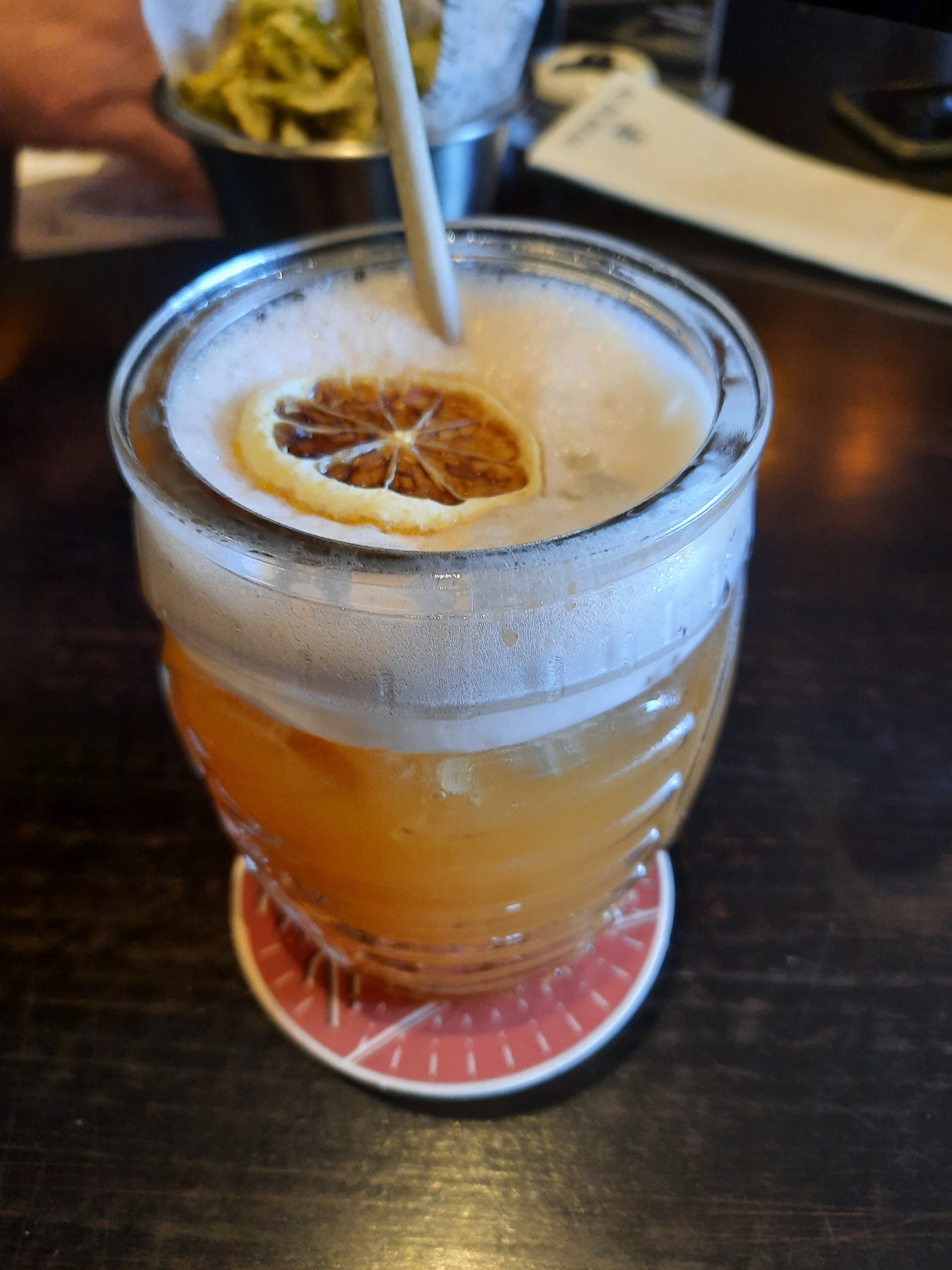 Pour une 1ère je suis plutôt agréablement surprise. Ambiance cosy j'ai adoré la déco, les murs bleus les objets d'époque, les tables et chaises plus haute sur une partie de la salle avec des reposes pieds, et le rameur au plafond. Les plats & coxktails sont très bons, servis joliment, et le personnel accueillant. Je recommande !