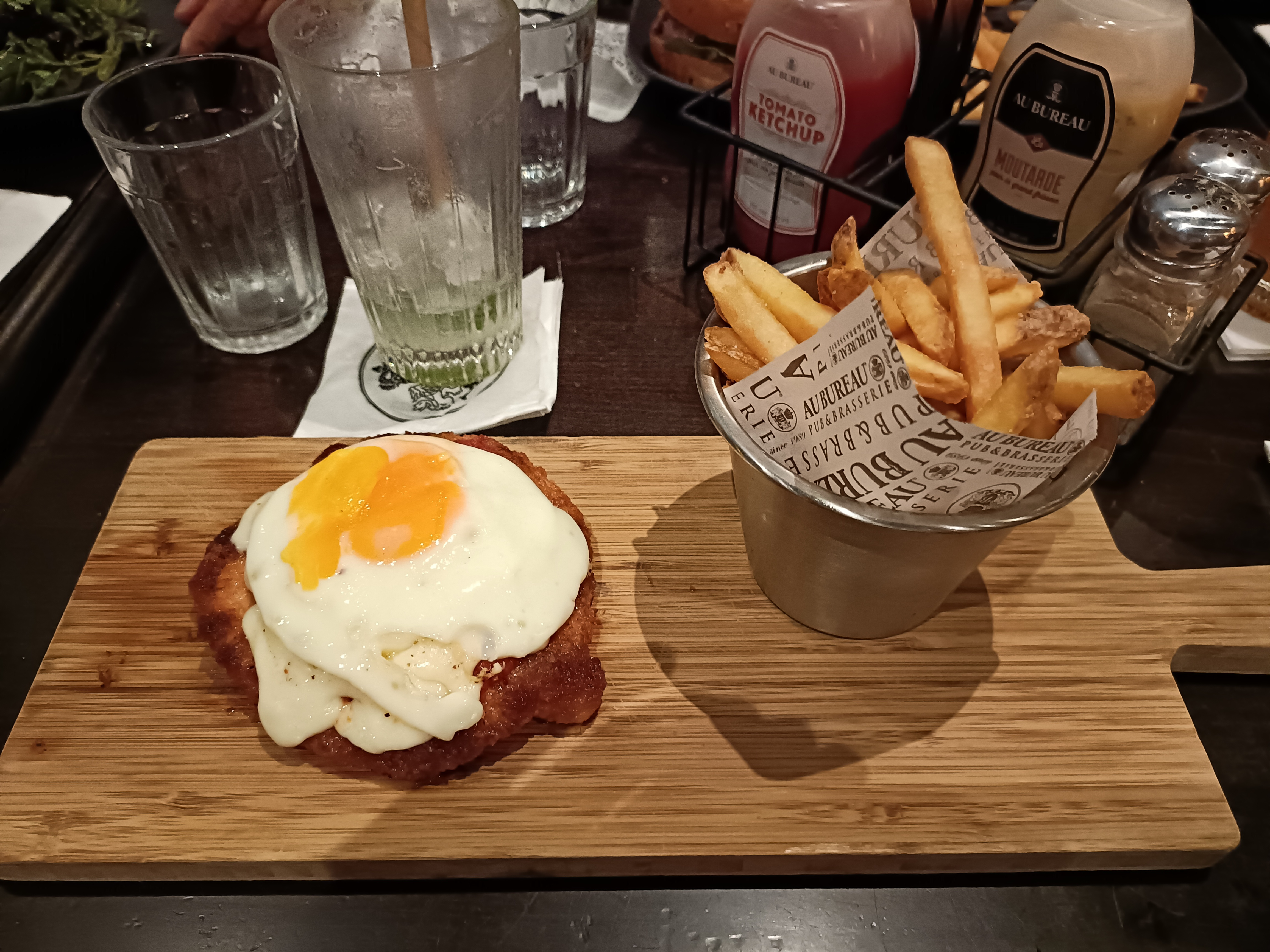 Rien à redire sur le service rapide et cordial. Par contre, au niveau gustatif ce n’est pas ça du tout. Ça faisait longtemps que j’entendais parler d’Au Bureau, et l’occasion de tester s’est présentée. Les plats étaient très gras et sans saveur, pour un rapport qualité assez élevé en conséquent de ce qui est servi.