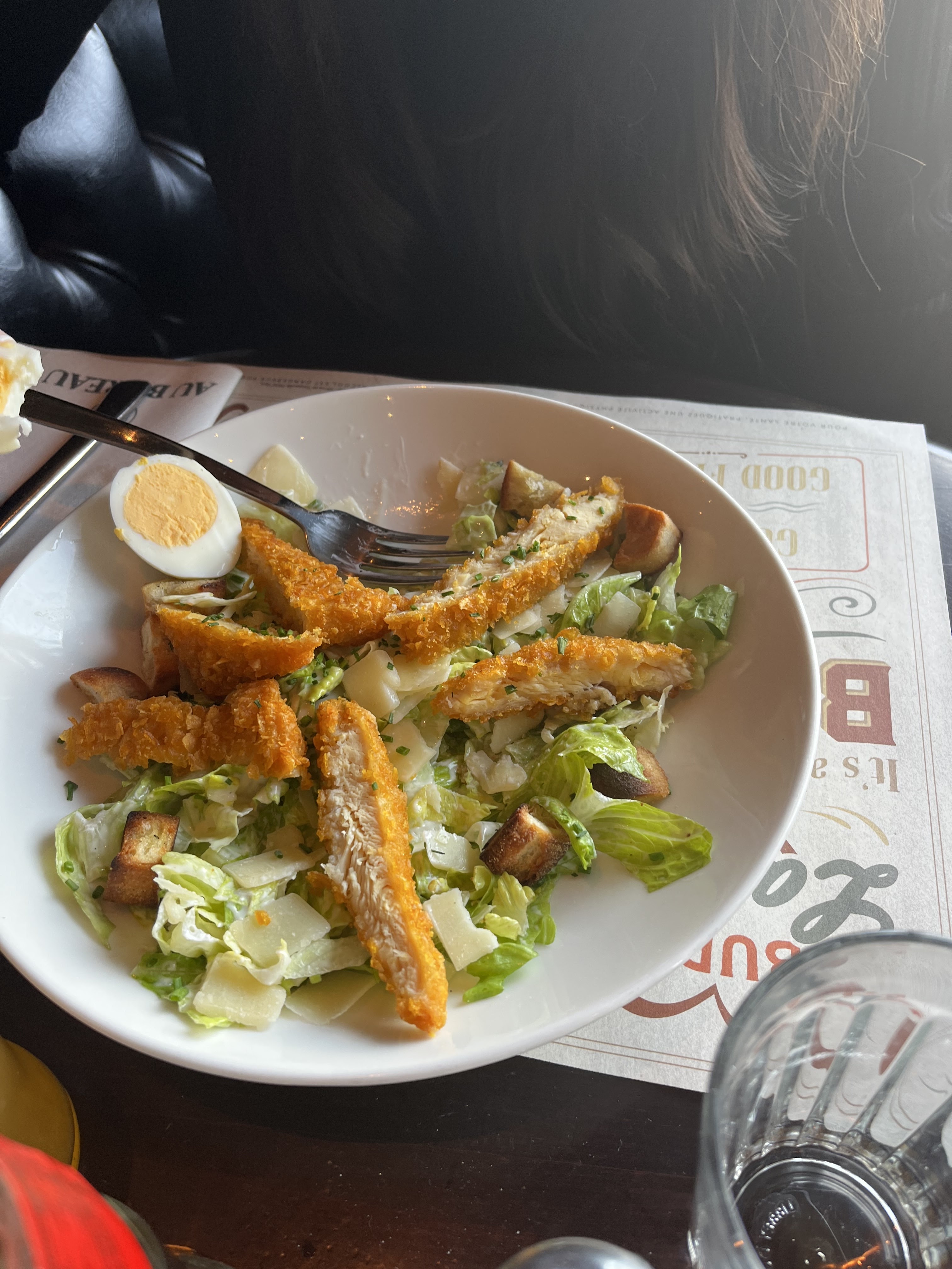 La nourriture et les boissons étaient bonnes, le personnel était poli et sympathique, le café était une petite semaine. Au Bureau est un grand restaurant au style pub britannique haut de gamme. Le menu est un mélange de français/britannique/américain. J'ai commencé par le cocktail Brexit, il était savoureux et pas trop sucré, même si j'aurais préféré qu'il soit servi avec plus d'alcool. La salade Winter Detox était délicieuse et correspondait assez bien à la photo du menu. Black Pepper Burger était exactement comme décrit. La sauce au poivre noir était très forte, ce que j'ai beaucoup apprécié mais qui pourrait être trop pour certains. Le café après le repas n'était pas aussi fort que celui auquel je suis habitué en France, mais cela pourrait poser un problème pour commander du décaféiné. J'y retournerais certainement si je suis dans la région, mais je ne ferais pas un voyage juste pour manger ici.
