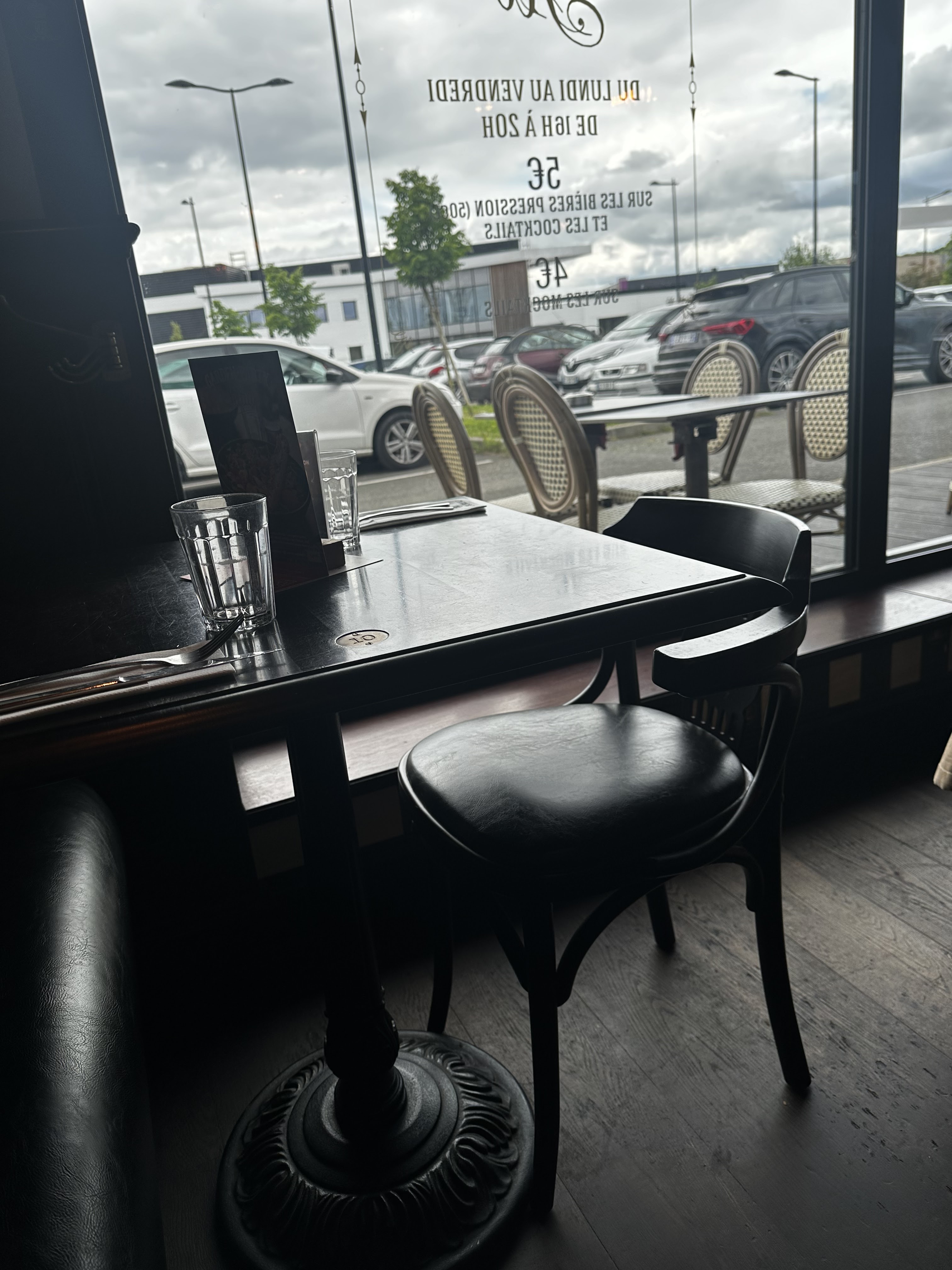 Bonsoir Nous avons réservé pour 19h30,à notre arrivé une table nous attendais. Puis nous commandons un apéro et un plat chacun. Jusque-là tout va bien. Mais au moment du service !! Nous commençons à manger puis l’apéro viens ensuite,je fais la réflexion au serveur,mais pour lui ce n’est pas Grave !! Pour moi Oui !! Il me dis il y aura un geste commercial !! Lors du Paiement,je dis mon problème au Caissier,lui aussi me fait comprendre que ce n’est pas si grave !! Pour moi Si !! Donc un Geste Commercial a été fait.