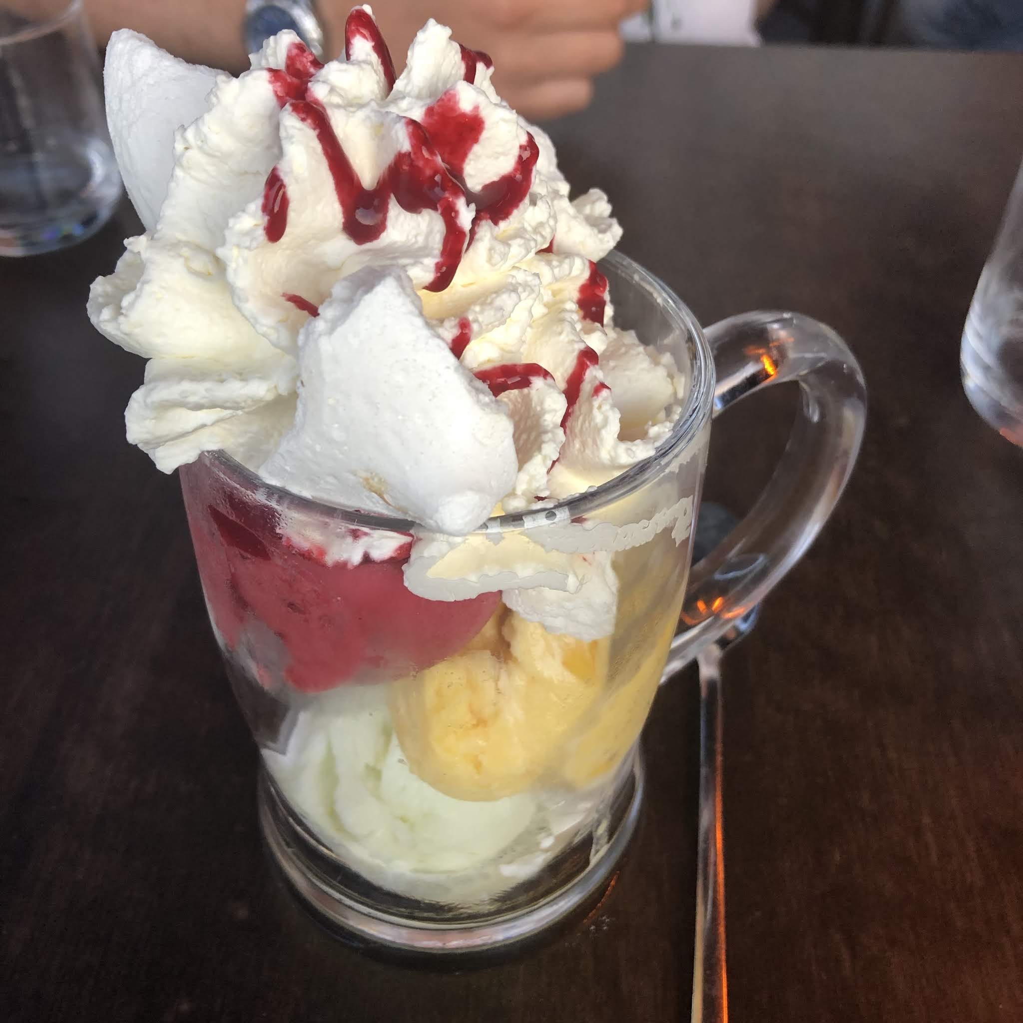 La tartine est intéressante. Dommage que deux choix. Le dessert glacé avec le supplément chocolat est à revoir car deux traits sur la glace cela fait plus que ridicule.