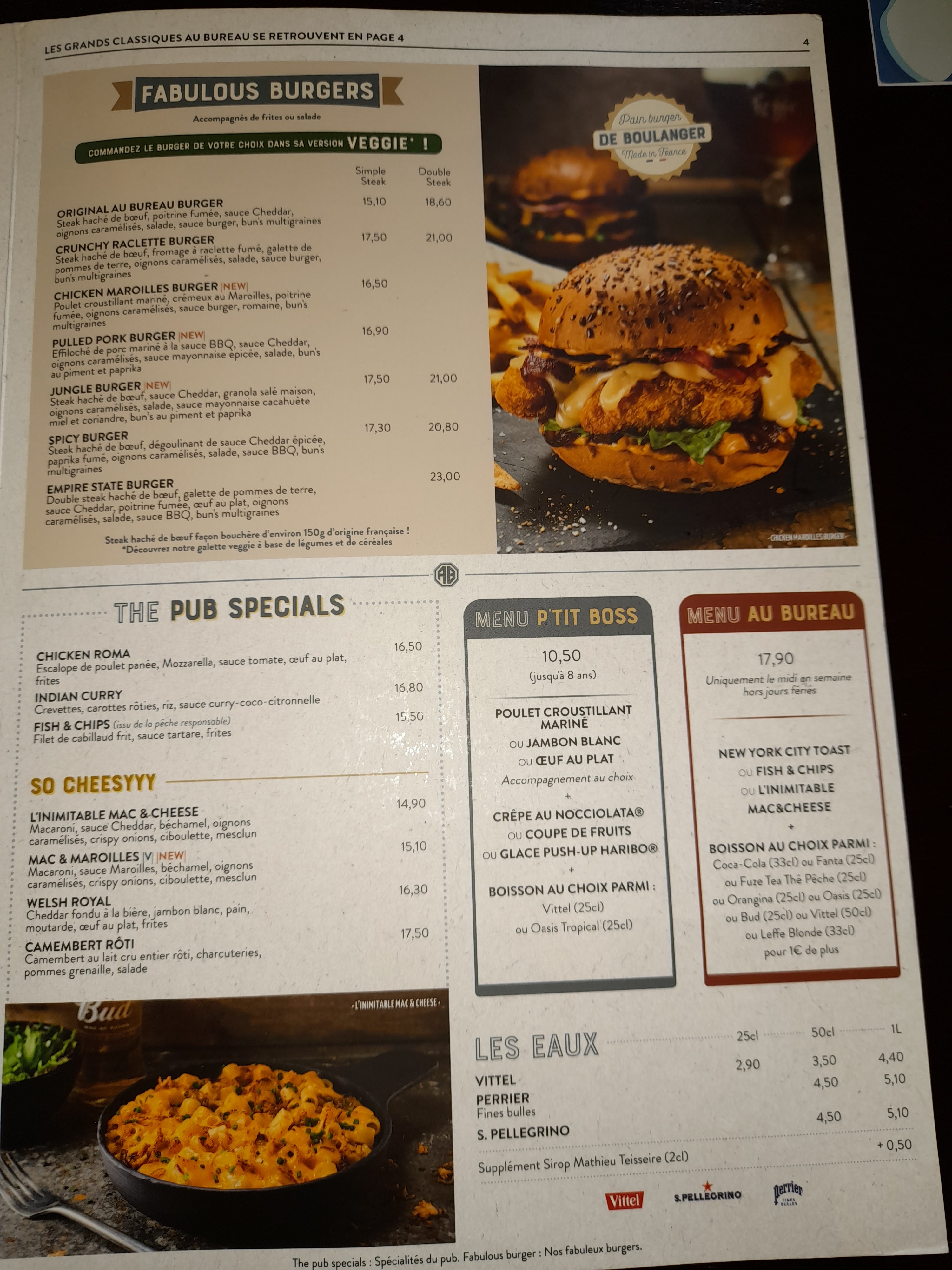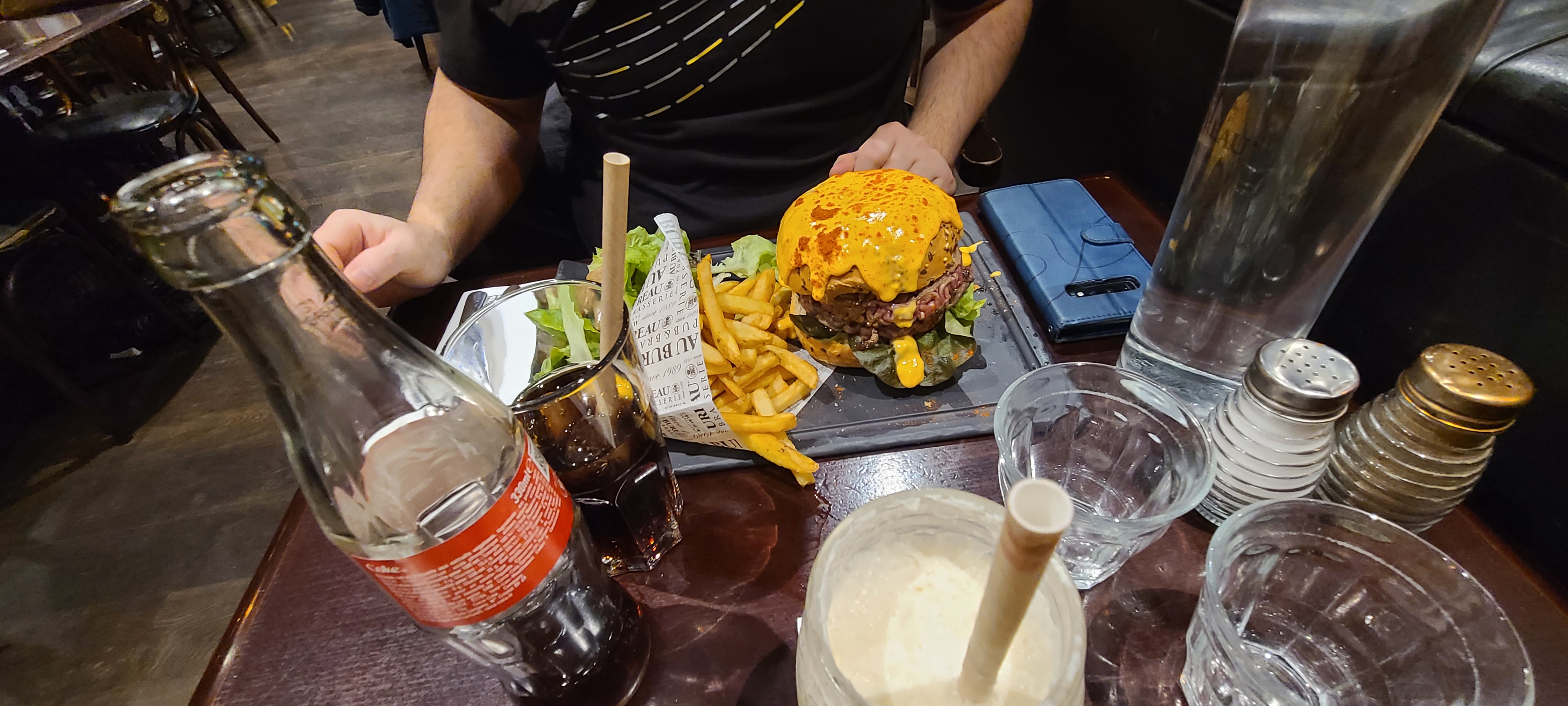 J'ai mangé un hamburger au comté avec un steak haché avec des frites c'est sans plus... je trouve que les frites étaient molles pas très chaudes donc c'est dommage le service est sympathique c'est un peu cher pour ce que c'est quand même