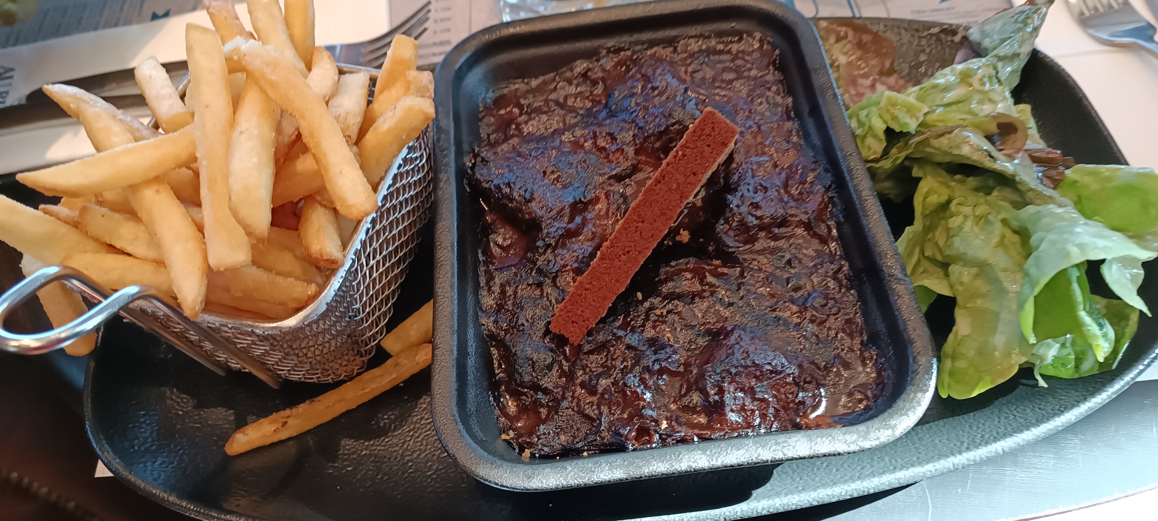 Accueil très efficace, service rapide et lieu cosy...déco très sympa. Peut être une amélioration à apporter sur la qualité de la bavette ( pas très tendre) et j'ai pris une salade crevettes très peu garnie et trop salée ( à mon goût)..Un peu décevante tant en présentation qu'en originalité ( par rapport au titre donné à la salade !).