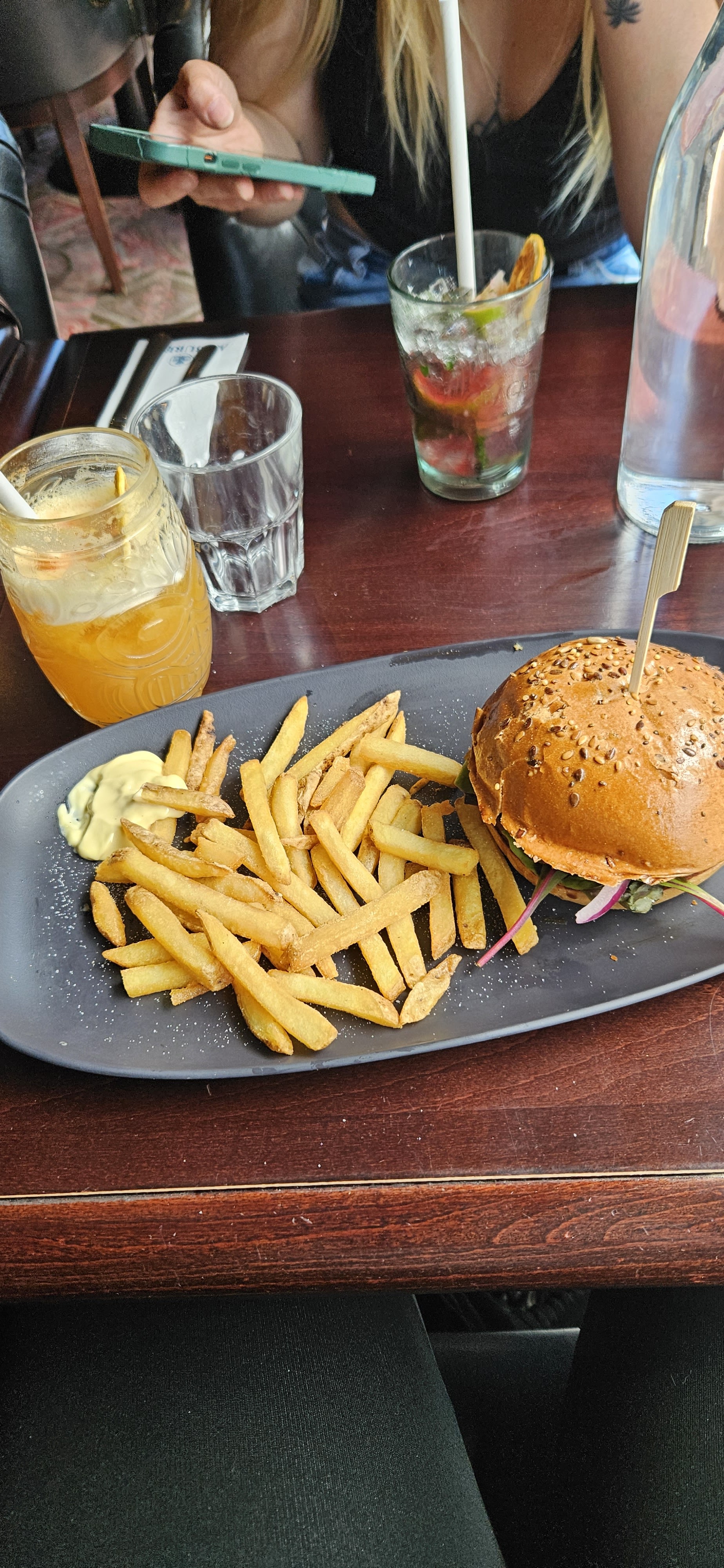 Le crunchy burger était délicieux, ainsi que le cocktail avec de la glace et cerise ( dsl j'ai oublié le nom) J'ai beaucoup aimé la déco et le personnel est extra , très sympa, aimable et accueillant Je recommande !