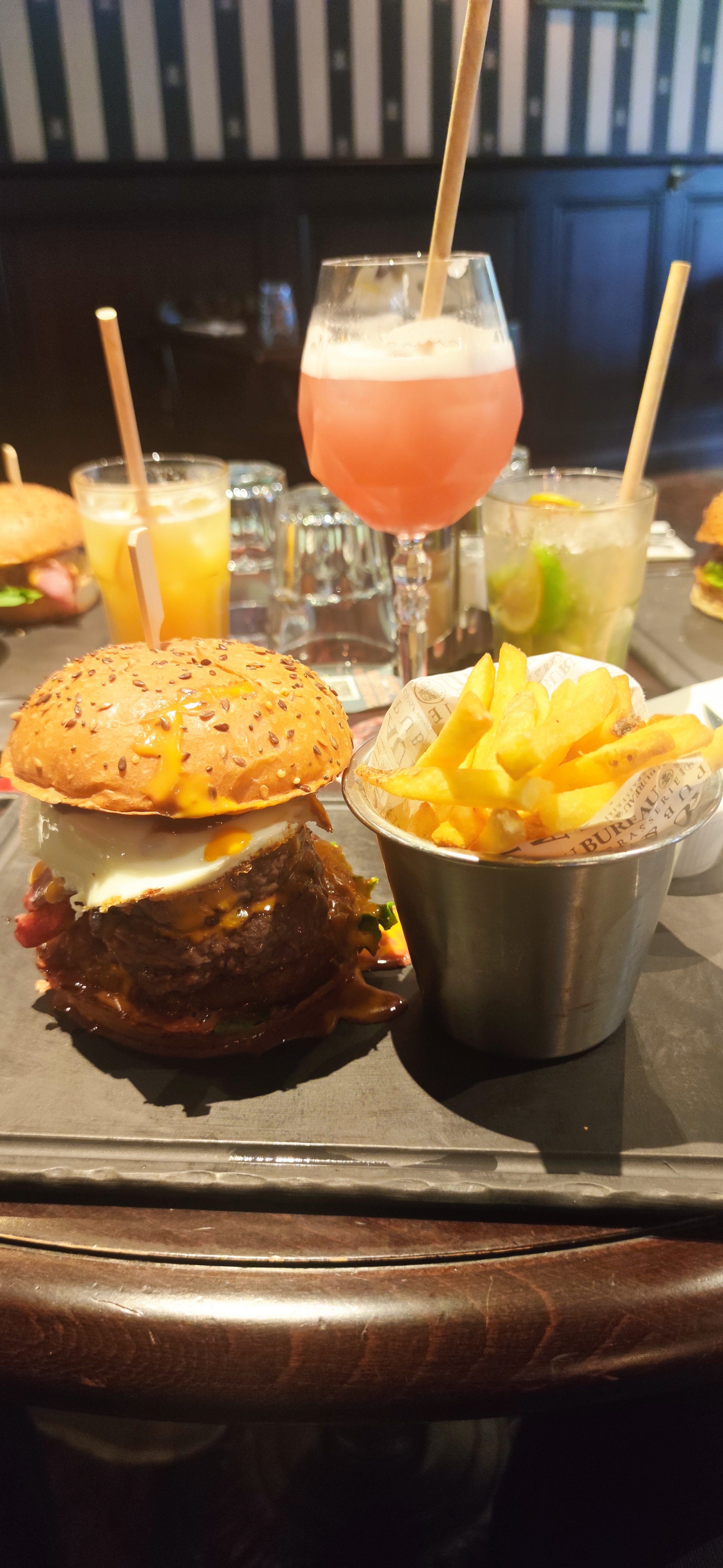 Nous avons fêté notre anniversaire au Bureau à Suresnes, excellent accueil, service sympathique, les burgers sont bons et les frites délicieuses, et on nous a gentiment offert les cocktails pour célébrer l'événement ! Encore merci, on a passé une super soirée.