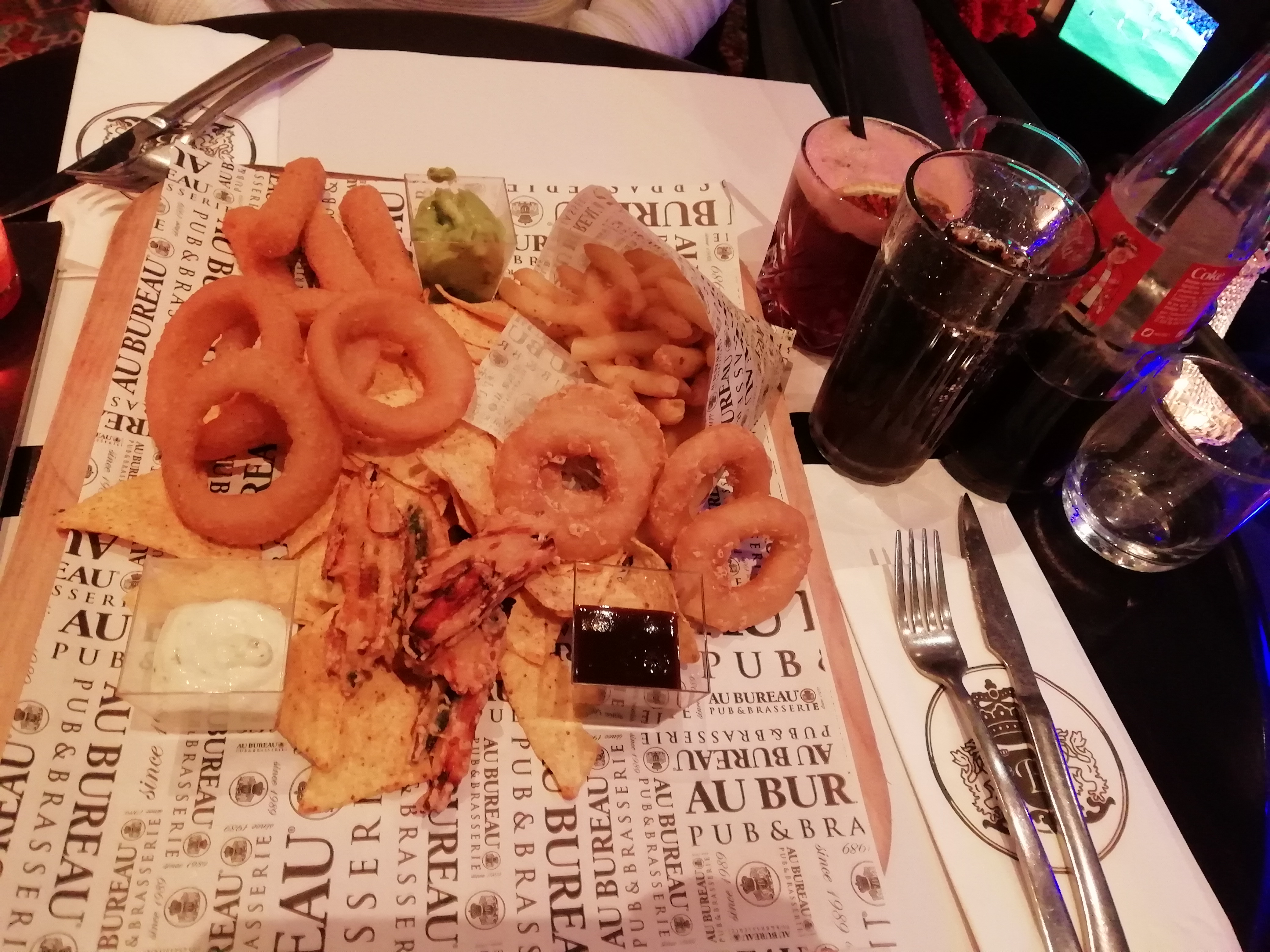 Les bières sont sympa, les tapas aussi même si il ne ressemble pas trop au visuel. Dessert chimique très sucré (triple fruits rouge, surtout la crème pâtissière) et musique vraiment trop forte