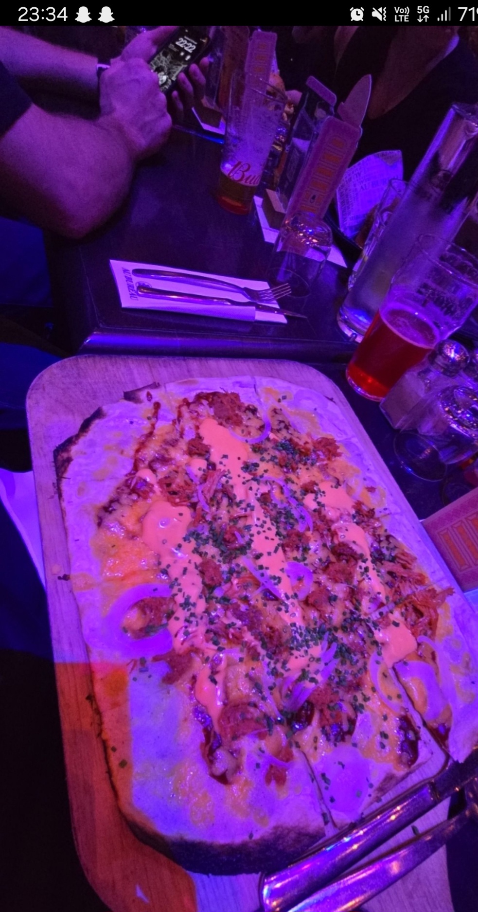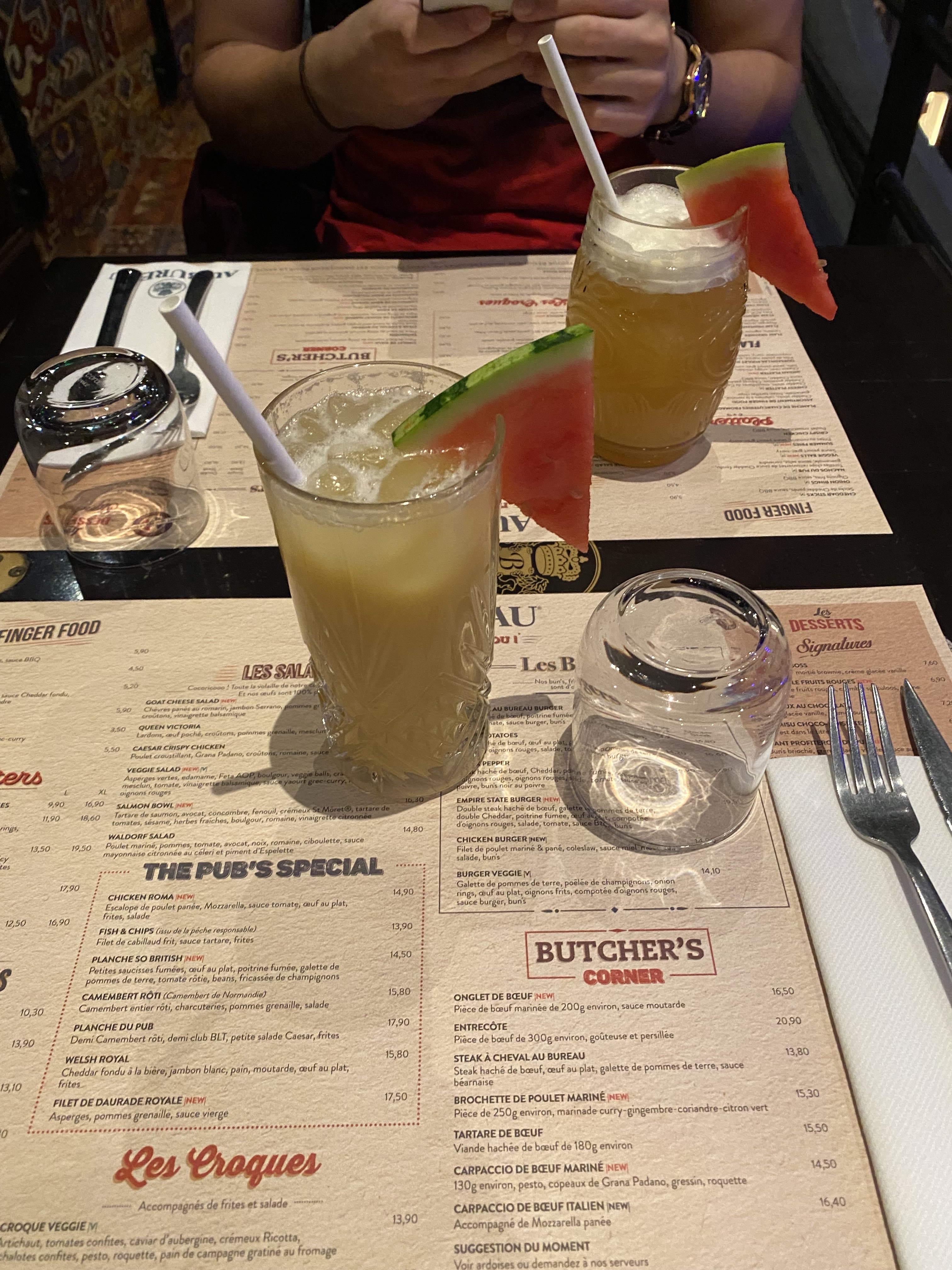 La flammenkuche était vraiment bonne, en revanche mon mari avait prit un burger et rien d’exceptionnel, surtout qu’il avait souhaiter un spicy burger (il c’est demander ou était le goût du spicy) et au final au moment de payer la surprise quand on a vu qu’un burger classique lui avait été servit… Le service 0 étoiles ! Servi par une brune au cheveux frise vraiment pas aimable, ensuite on lui demande si on pouvait avoir les dessert nous dit que oui mais après 25 minutes d’attentes toujours pas de commande de prise on est donc parti sans manger de dessert.. elle nous a dit qu’elle reviendrait pour nous faire payer mais est jamais revenu et manque clairement de sourire et de professionnalisme comparer aux autres serveurs dommage que ce soit cette dame qui nous ai servi, malheureusement suite à cette première expérience nous ne reviendrons pas