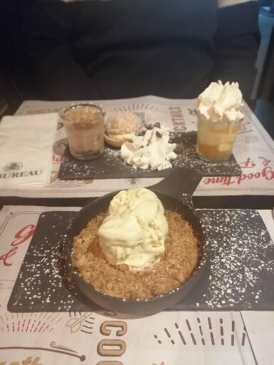 Un déjeuner très agréable. On a eut une serveuse qui avait la pêche et très attentionnée. Bon rapport qualité / prix. Service un peu long mais on va pas leur en vouloir c’est le type de brasserie qui manquait dans le coin. Le seul bémol ce sont les desserts un peu trop chargés en crème fouettée.