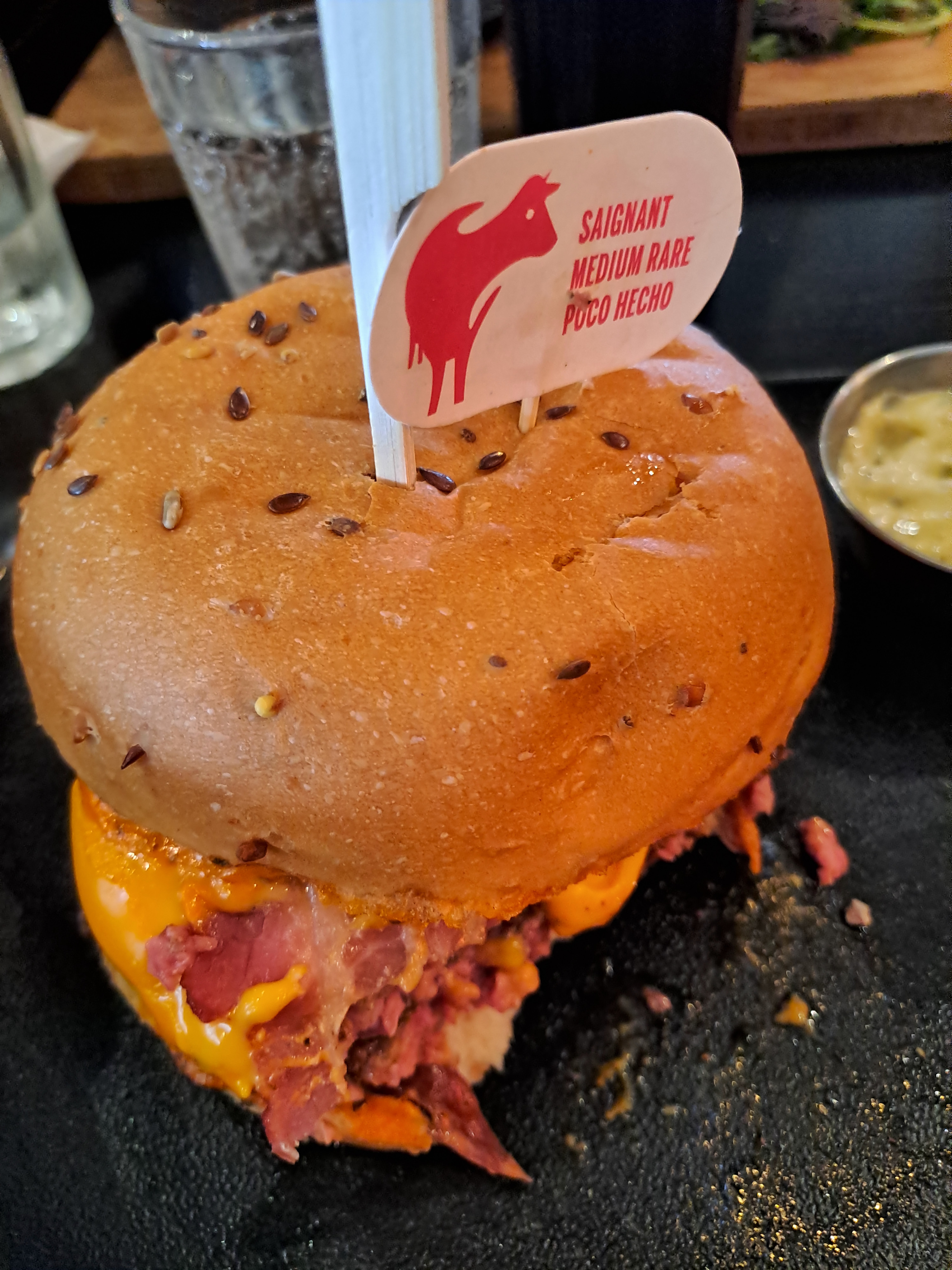 Nous avons voulu passer l’anniversaire de mon père dans ce restaurant.. mauvais choix! Service en 2 temps pour la table avec un burger bien cuit qui arrive saignant.. je demande à le changer; les autres ont fini le temps que le 2e arrive et il est encore saignant! Les autres ayant fini (et un serveur ayant déjà ramassé certains plats), j’ai retourné le burger et nous sommes partis ailleurs pour que je puisse manger.. Une fois, je comprends, deux fois et de longues attentes pour chacun, c’est trop! Nous avons eu un repas ENFANT offert mais cela ne valait pas une soirée conviviale dans un resto que mon père voulait découvrir. Mis à part ça, les burgers sont arrivés tièdes voir froids, le cheddar du spicy burger est farineux selon les autres. Je ne recommande pas.