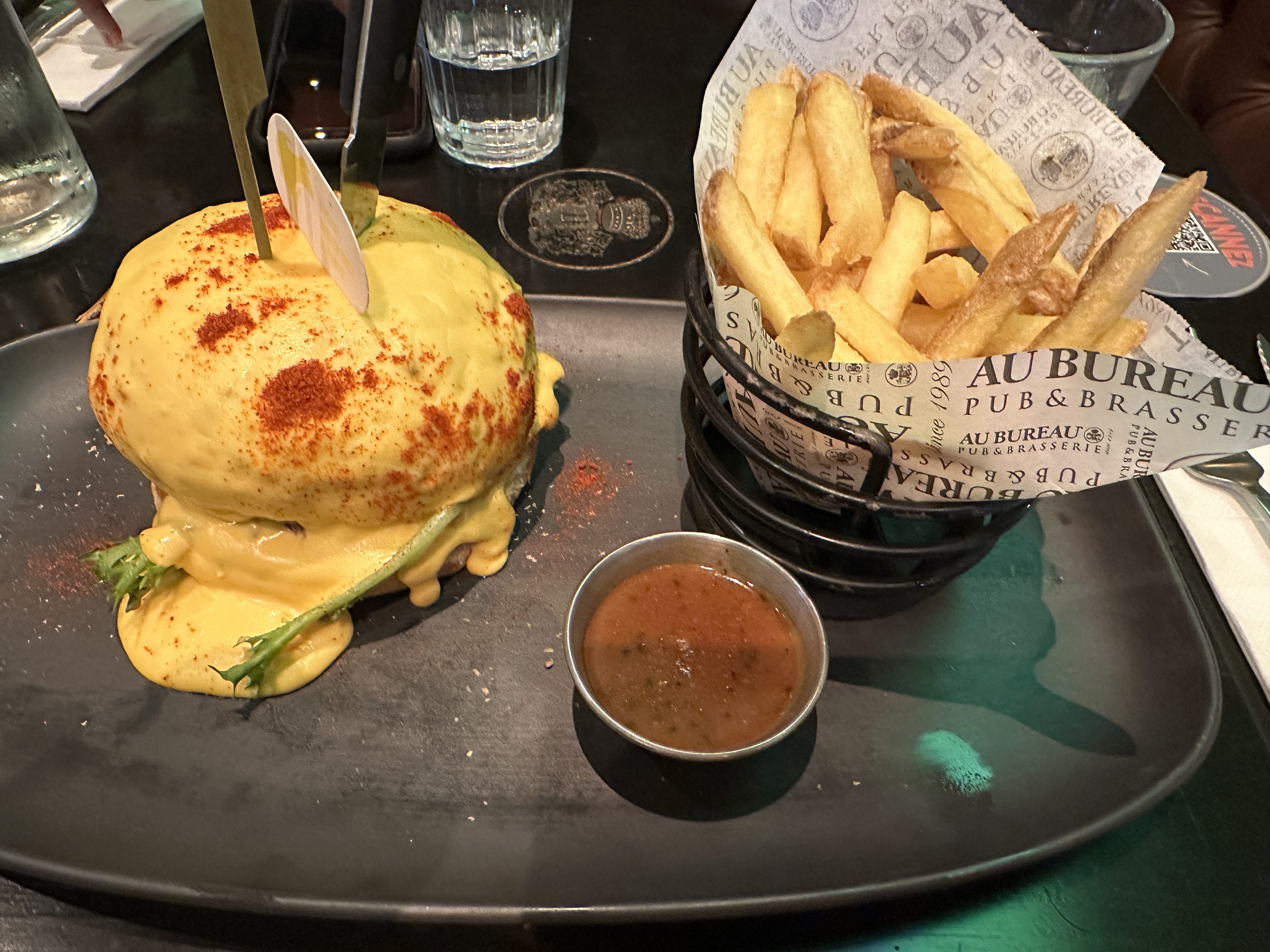 Testé dimanche midi en famille. Accueil, prise de commande (par Sébastien si ma mémoire est bonne), et service rapide et de qualité. Un peu de musique d’ambiance, des écrans aux quatres coins avec du sports, des tables avec de beaux fauteuils club confortables. Je recommande cette adresse.