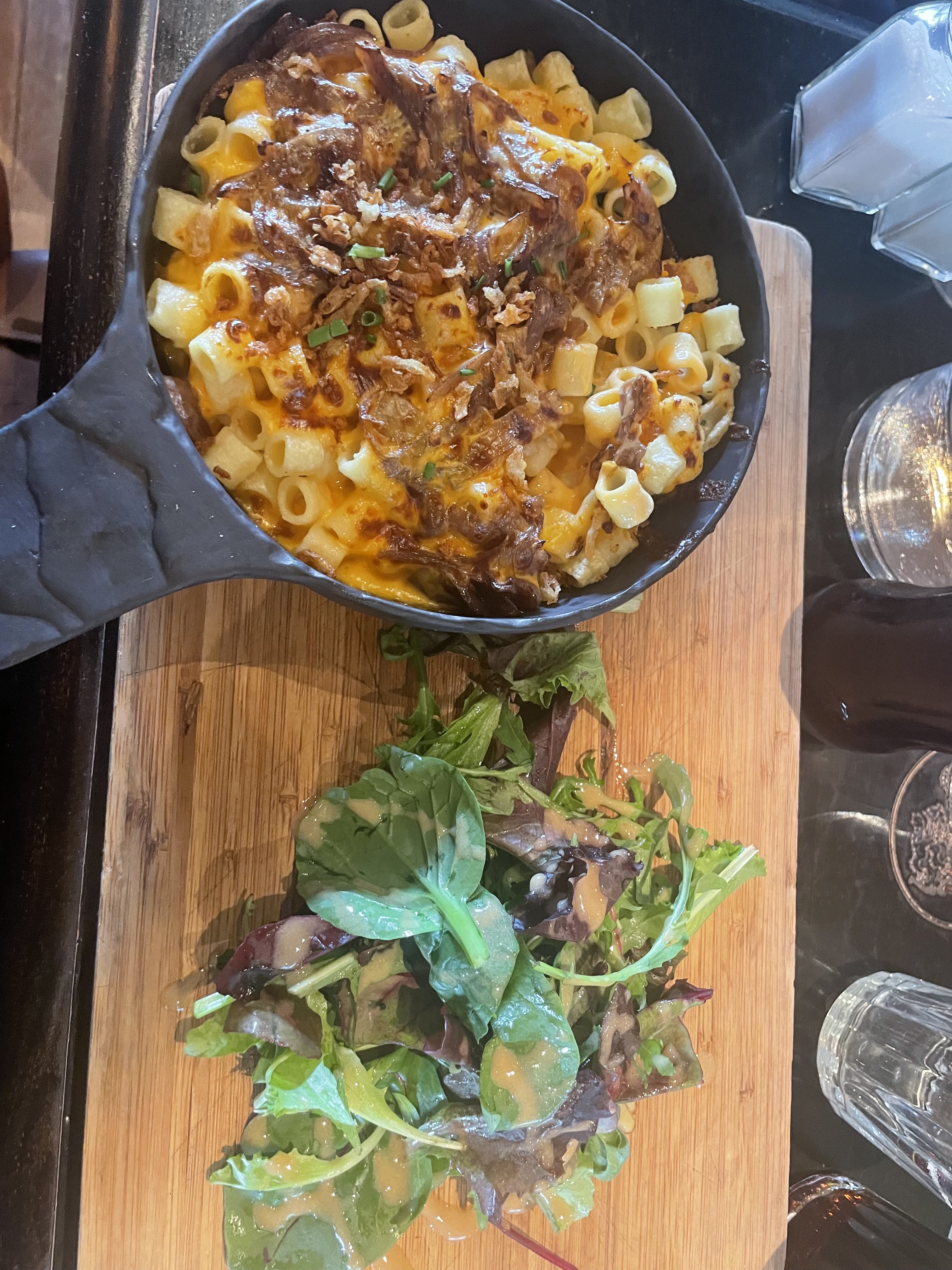 L'ambiance est celle d'un pub : bruyante Le camembert rôti était bon même s'il était supposé ne pas être avec des frites. En revanche le manager nous a fait 10% sur la note pour s'excuser de l'erreur. Il est dommage que les serveurs ne soient pas plus vigilant à leurs clientèle (on avait un peu l'impression d'être dans un coin et pour trouver un serveur c'était un peu compliqué)