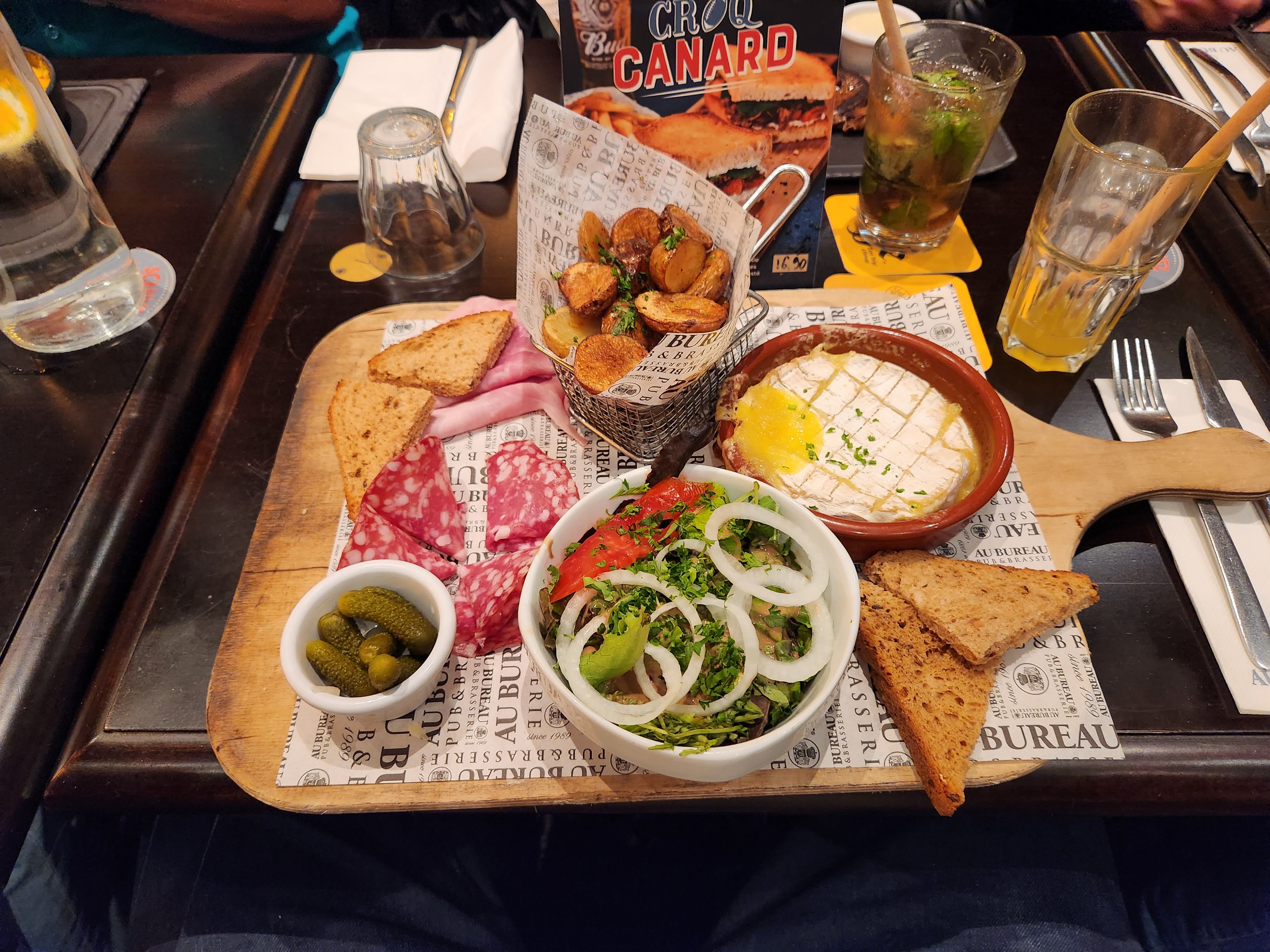 Beau resto, belle ambiance et service excellent. J'avais pris le camembert au four, donc un classique. Le fromage était bon pour ce qui est de l'accompagnement des petites pommes de terre bien cuites avec une petite salade rien à dire par contre la charcuterie gâche l'ensemble, en effet 2 ou 3 petites tranches de jambon blanc de qualité très moyennes avec 3 tranches de saucisson je n'attendais pas de la viande de Grison mais un petit jambon de pays aurait été franchement un peu plus sympa...malgré tout le restaurant est très sympa avec un excellent service rien à dire, j'y retournerai sans hésitation, mais pour prendre autre chose...