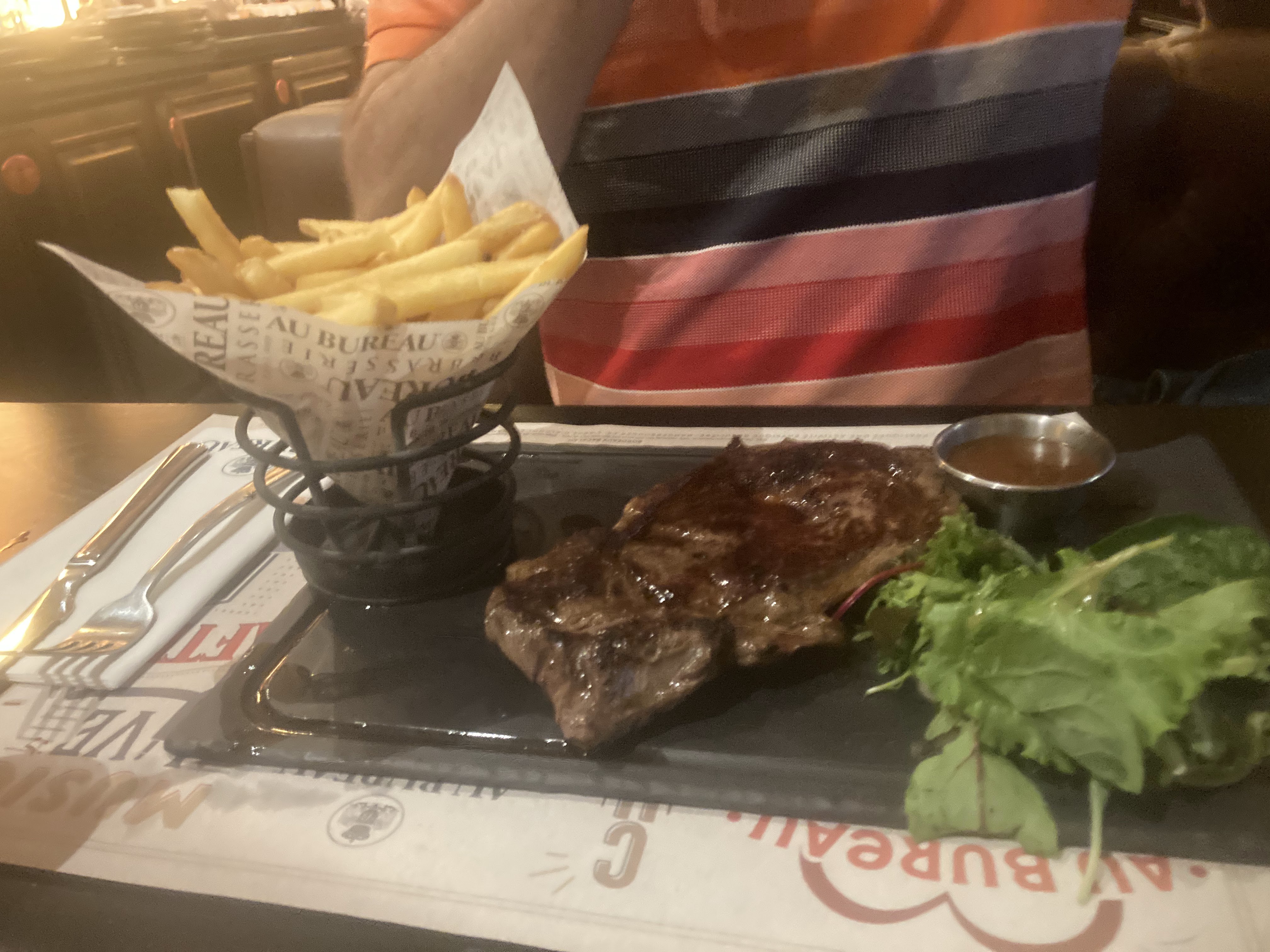 J'ai manger une entrecôte. Wouaw elle vaut son prix. Je vous invite à y aller. Le cocktail était un virgin, avec de la pomme poire canelle.... Rien à dire. 🥰