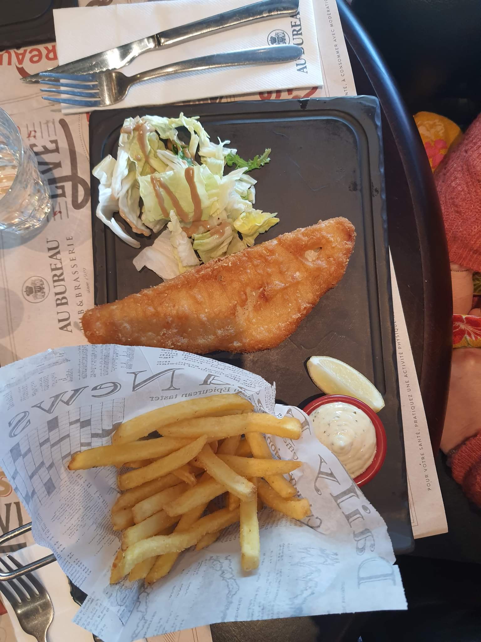 j’ai réservé pour neuf personnes afin de nous réunir pour notre dernière soirée mes camarades de formation et moi. Le lieu est vraiment très sympa et la présence de plusieurs téléviseurs nous permettait de suivre le match de rugby de la soirée. Le service n’a appelé aucune remarque particulière : il a été rapide sans être expéditif et la jeune femme qui avait la charge de notre table était souriante et à l’écoute du début à la fin du repas. Ma bonne humeur a toutefois été passablement gâchée au moment de régler l’addition. En effet, j’avais payé discrètement les boissons et il ne nous restait plus qu’à nous acquitter du montant des plats et des desserts pour lesquels nous décidons de partager la note. Je paye ma quote-part mais je jette un œil à l’addition et me rend compte qu’il y a une anomalie. Nous avons pris chacun un plat et un dessert : de fait, la note aurait du avoir dix-huit lignes au lieu des dix-neuf que je comptais. J’ai essayé d’expliquer au jeune homme à la caisse qui ne comprenait pas ou qui faisait semblant de ne pas comprendre (pas envie de s’em****er). Au bout de cinq explications mode « problème d’arithmétique d’école primaire » auxquelles il répondait systématiquement « c’est quoi le problème », le jeune homme change de stratégie et me répond « c’est l’ordinateur » ! C’est un de mes camarades qui a remarqué parmi tous les noms plus ou moins explicites qu’une des boissons (que j’étais sensé avoir payées auparavant 🙄) figurait sur la note… Bref… c’était la faute à l’ordi et non pas une erreur humaine 😋 En outre, n’ayant pas vérifié ce que j’ai payé en boissons, rien ne dit qu’une consommation n’ait pas été payé deux fois… Pour finir : Une étoile en moins pour cette passe d’armes désagréable. Une étoile en moins pour le rapport qualité-prix du contenu de l’assiettte.