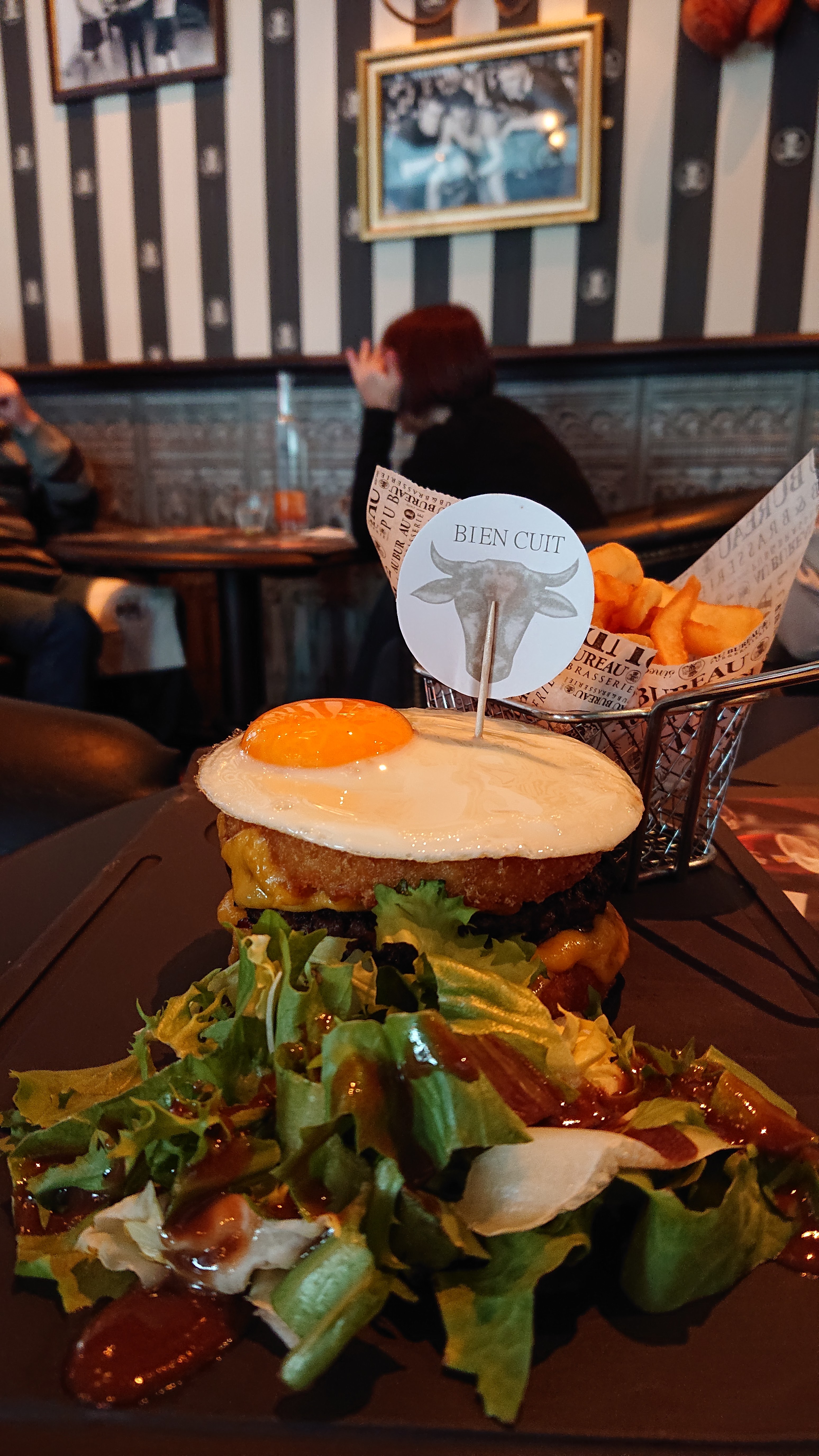 Servi en cinq minutes, patron très très sympa, serveurs au top, très accueillant et franchement il y a rien de mieux que les brasseries. C'était juste trop délicieux, le steak à cheval au bureau est vraiment parfait.