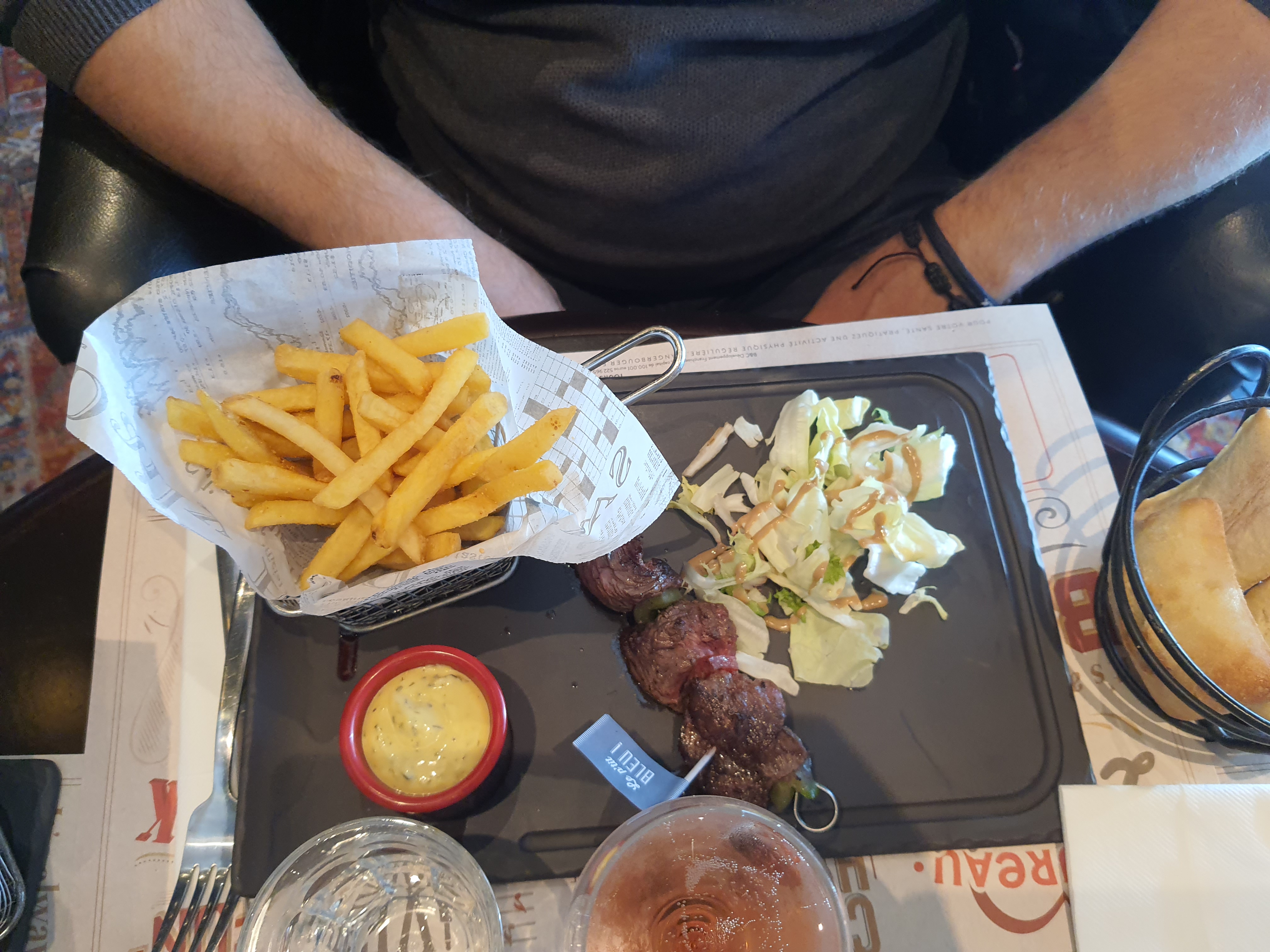 Nous avons commandé un tartare de bœuf, plutôt bien mis à part le cornichon à incorporer qui étais coupé en trois gros morceaux et quand on demande à ce qu’il soit tailler finement comme il aurais du l’être, c’est le serveur qui le fait car le cuisinier pour citer ses mots « avait la flemme « Cependant la carte est bien, il y’a du choix, vous êtes servis rapidement et les portions sont généreuse.