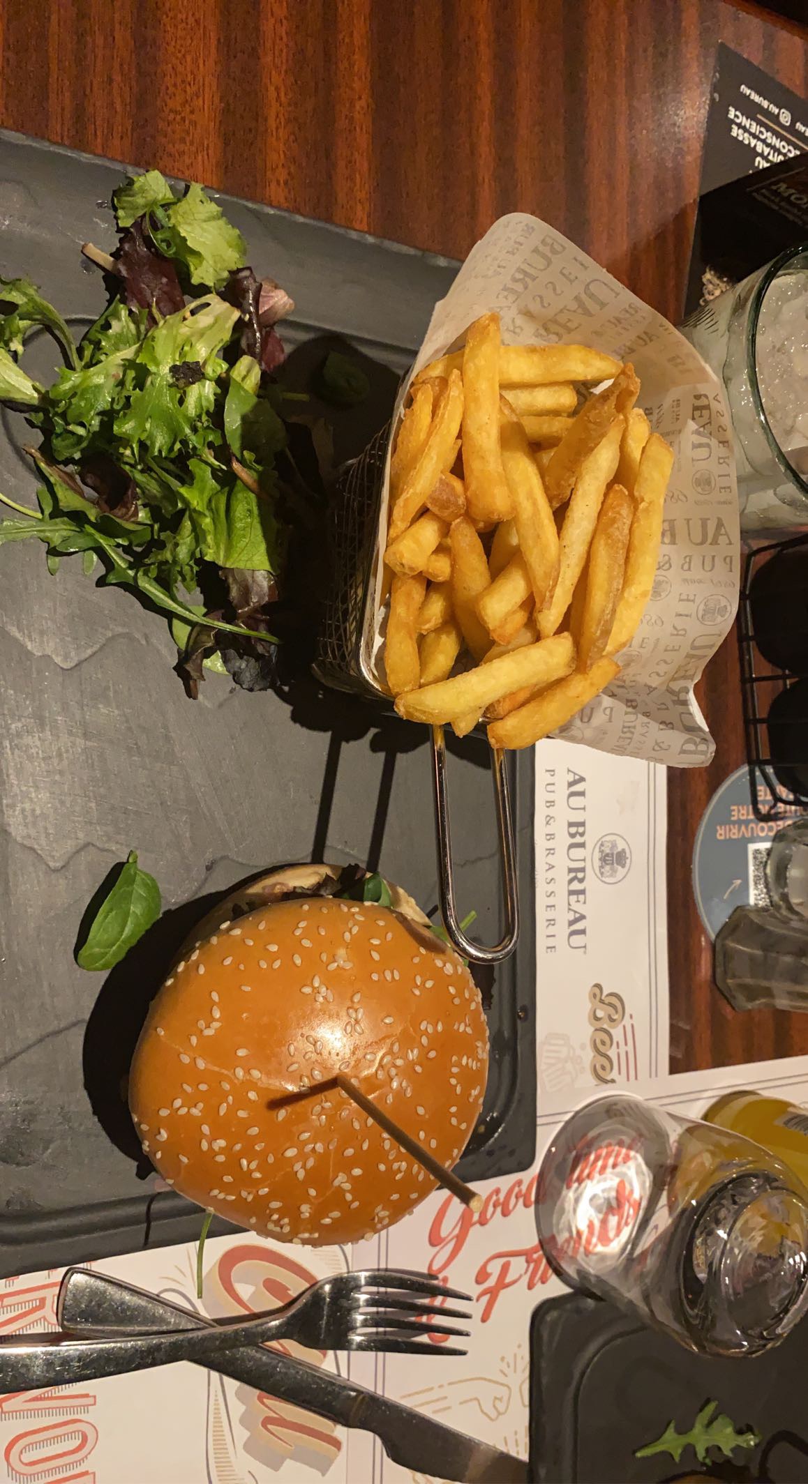 Super restaurant, personnel super agréable. Petit bémol les fauteuils pas forcément confortable pour manger. Nous avons le « Au bureau original burger » qui était certainement l’un des meilleurs burger que je n’ai jamais mangé. Le mojito était également super et parfaitement dosé. Le petit plus était la serveuse qui était très à l’écoute et très sympathique.