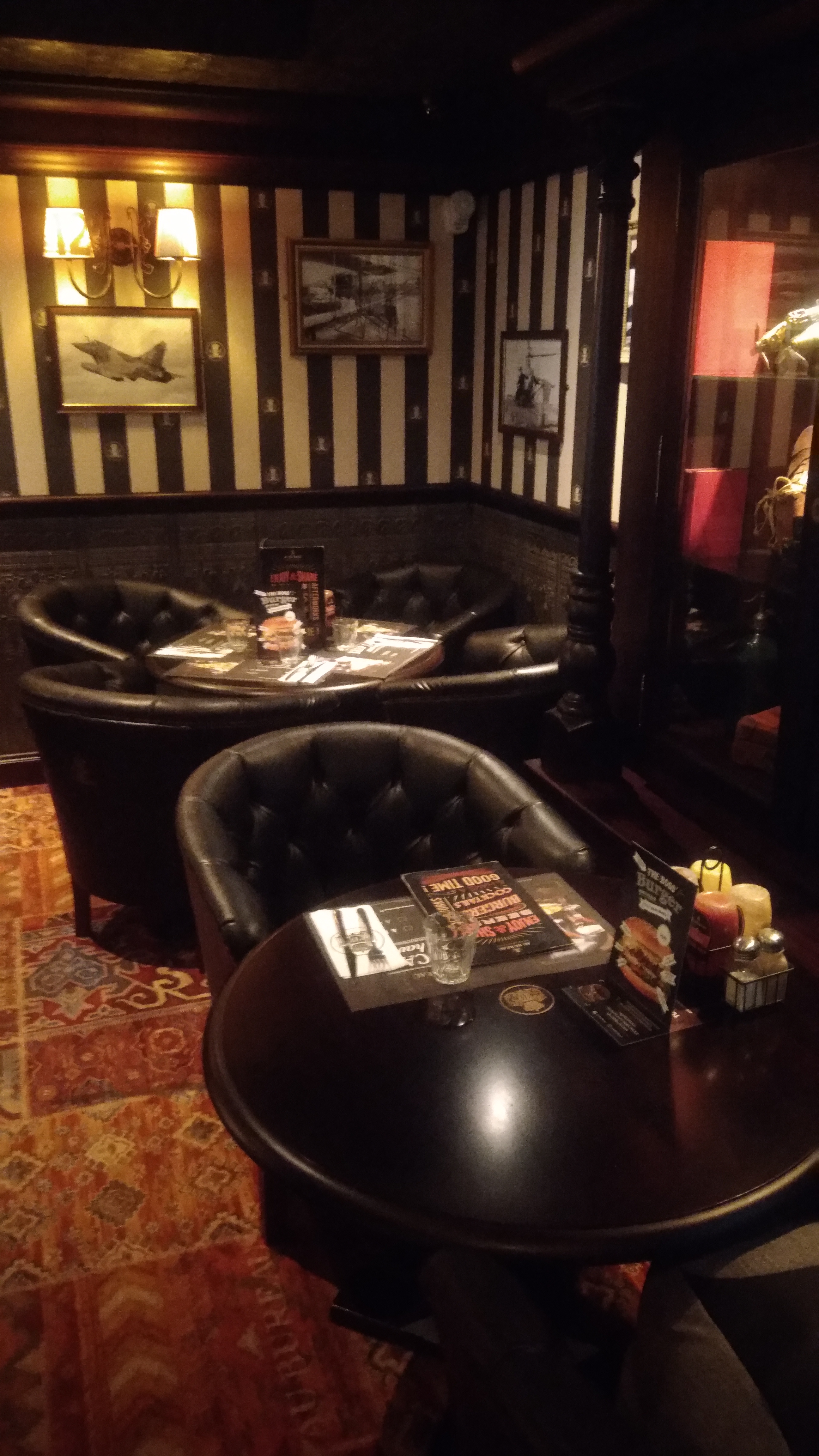 Nous sommes venus à 24 pour faire un repas d entreprise avant d'aller à notre activité. La salle était bien aménagée. Par contre côté nourriture et service, c'est autre chose. La société pour laquelle je travaille nous proposait 2 plats à choisir ainsi que 2 desserts. Une femme enceinte a eu envie d un hamburger. Avec le OK de notre direction, elle est allée voir le serveur qui lui a refusé. Nous avons du insister pour qu il cède. Pas très commerçant quand nous proposons de payer en plus le plat ! Les fish & chips baignaient dans l huile. Certains manquaient de cuissons La brochette de poulet au curry était pas mal. Personnellement je ne reviendrai pas mais nous avons quand même passé un bon moment.