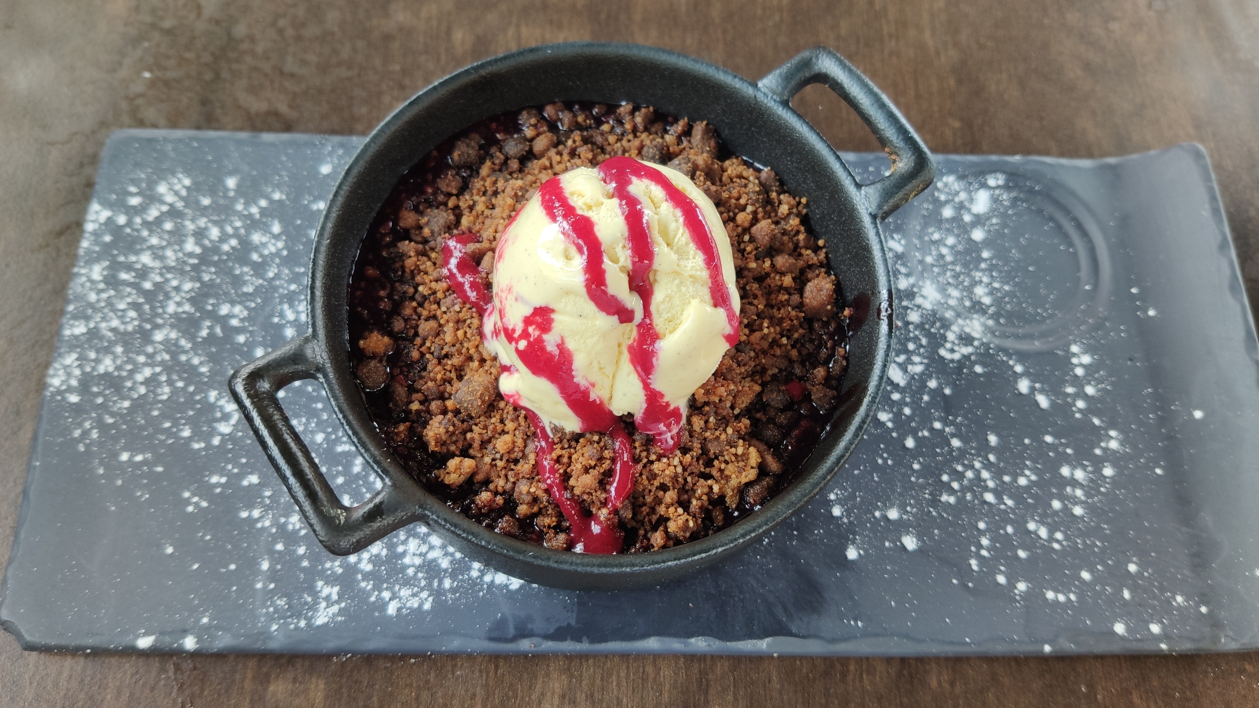 Bonne ambiance, personnels sympathique. Repas bon avec une belle présentation. J'ai juste trouvé mon dessert beaucoup trop sucré (crumble aux fruits rouges), mais ce n'est que mon avis.