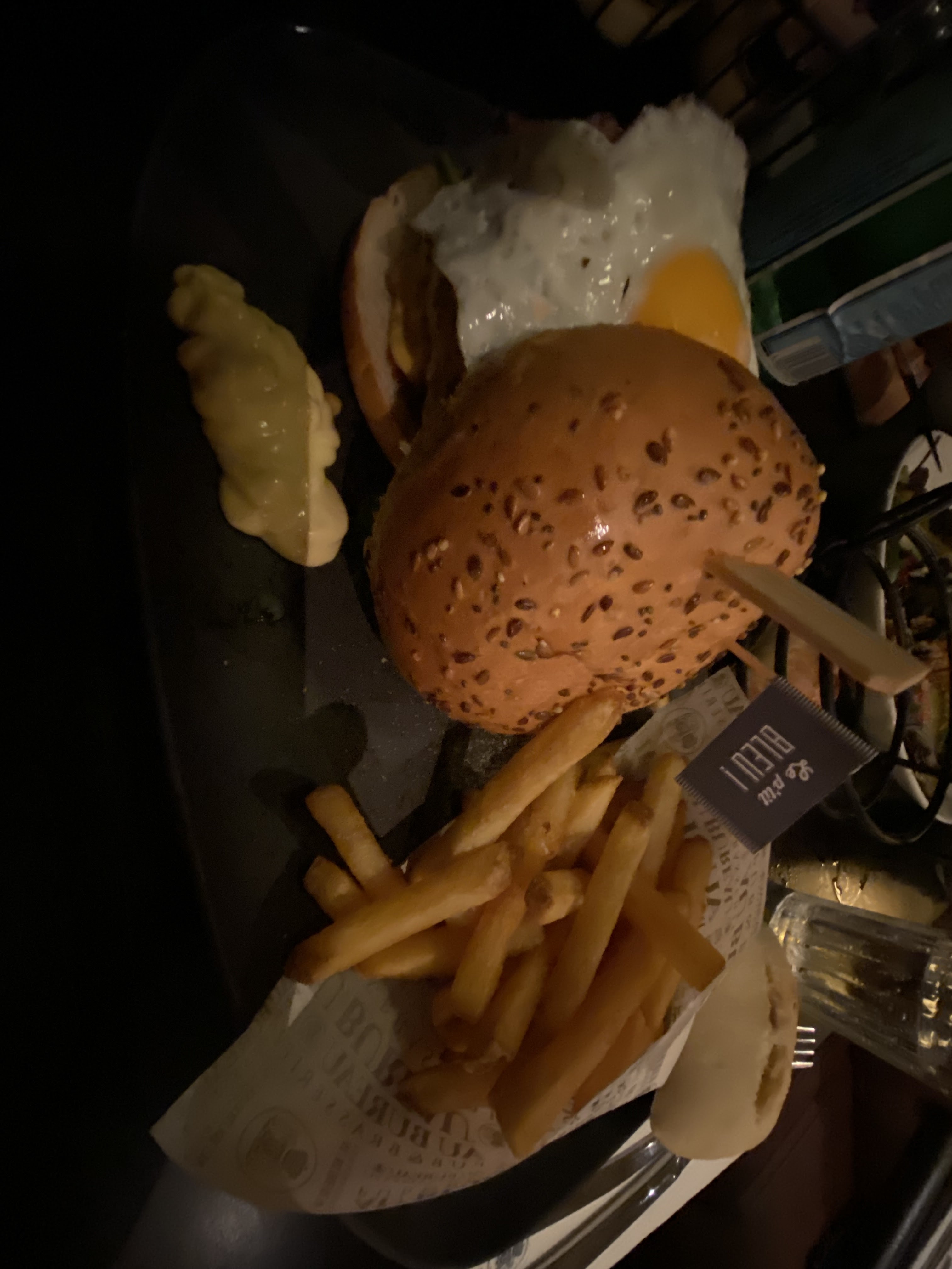 Super Restau les burgers sont hyper généreux, bonne musique qui mets une bonne ambiance, et très agréable serveuse en particulier Shirley qui a été très réactive à l’étage