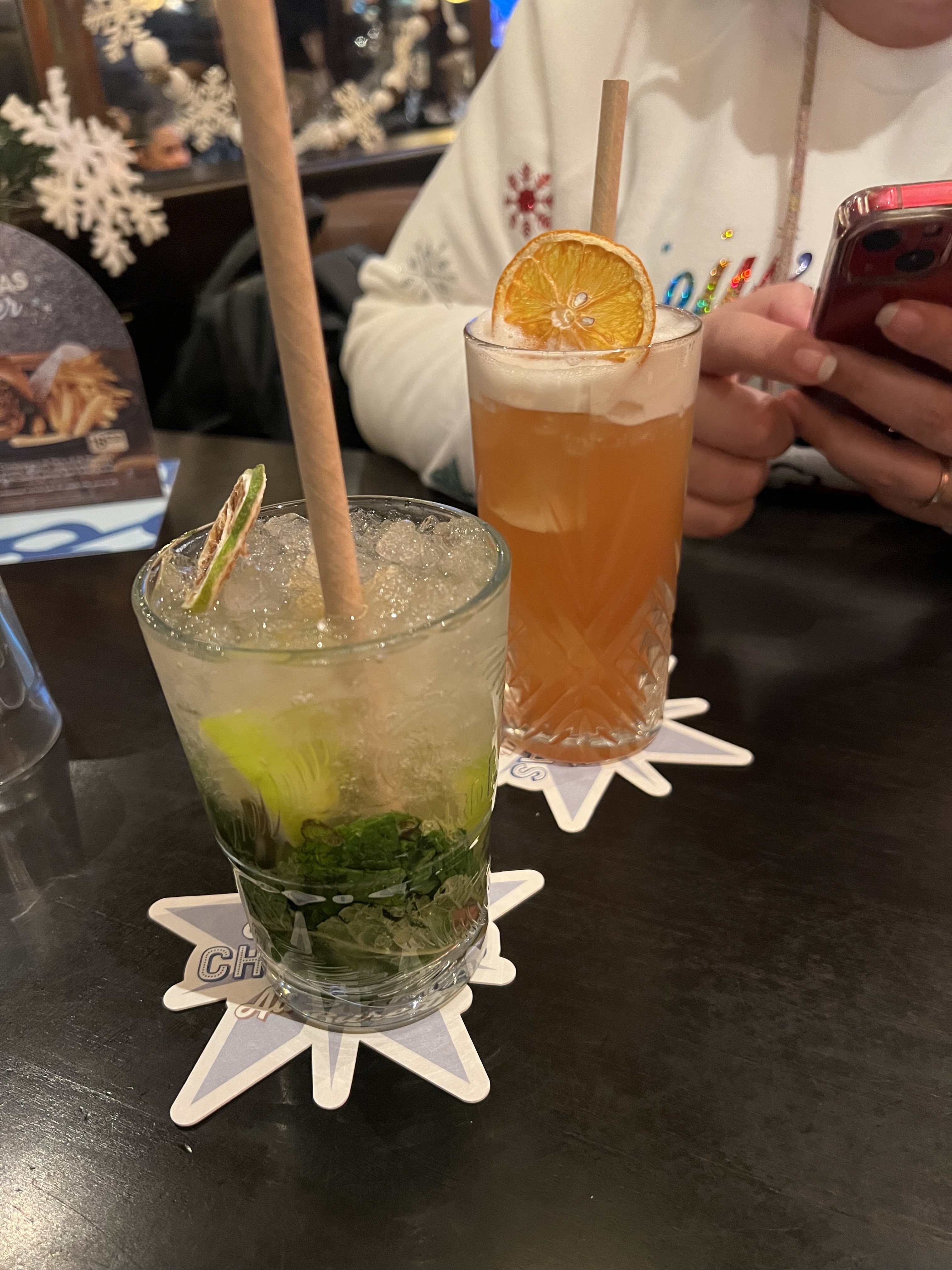 Un peu d attente à l entrée un samedi 18h alors qu il n y avait pas grand monde à l intérieur, mais déco et ambiance sympas , cocktail sans alcool le Green River une tuerie je reviendrais.
