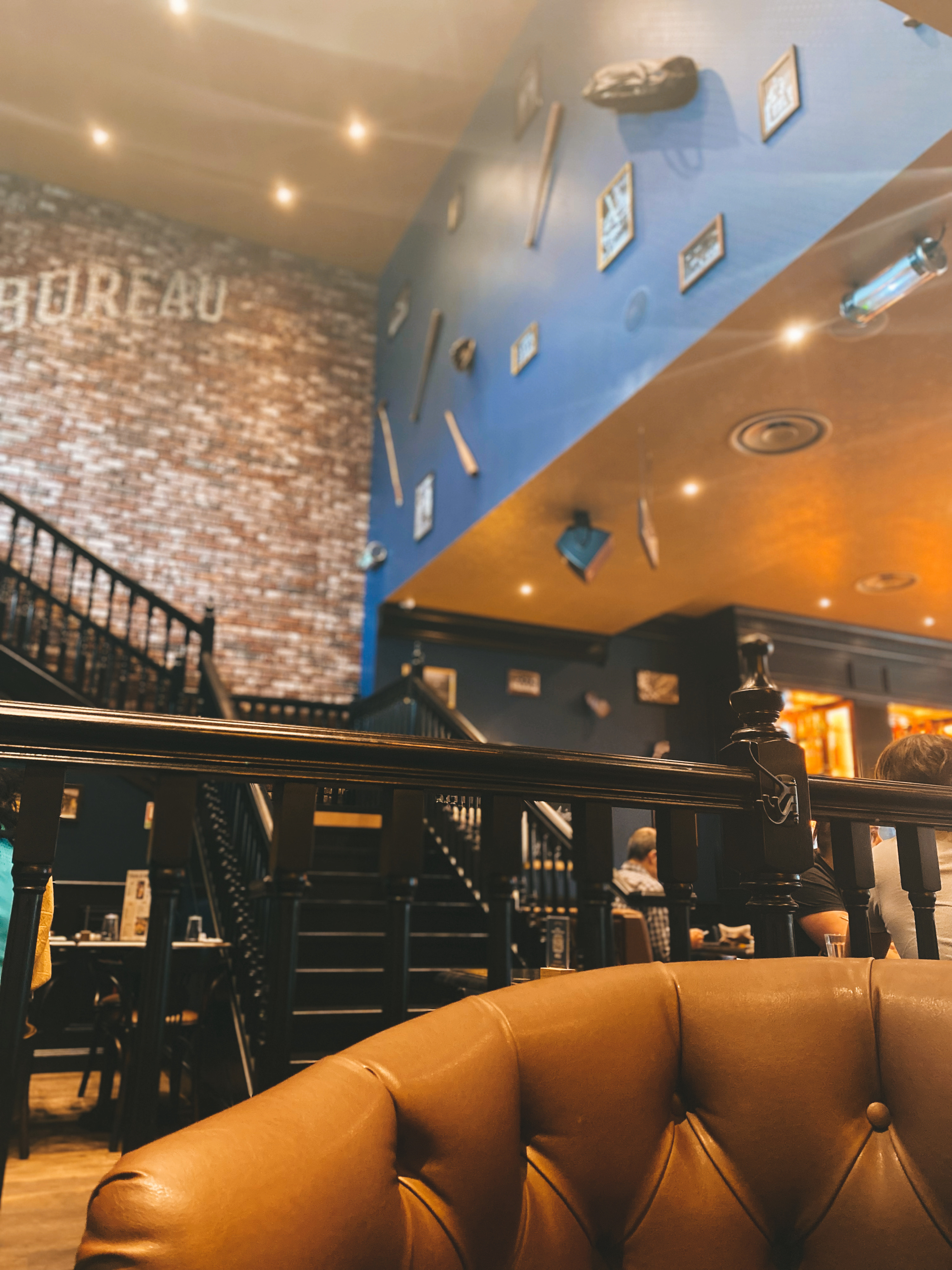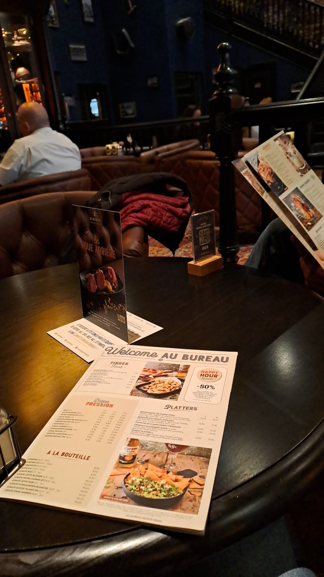 Beau lieu mais rapport qualité prix pas satisfaisant. Salade Caesar à 13.90€ mais très vide c'est à dire juste le poulet pané, de la laitue beaucoup de laitue et des copeaux de parmesan avec des croûtons. Burger raclette bon a 17€ mais sans plus. Les finger chicken n'étaient pas tous bien cuits. A comparer avec un restaurant similaire sur les plats choisis ce jour, je choisirai hippopotamus à la place d'au bureau. Un peu dessus au vu de la réputation et surtout du prix des plats.
