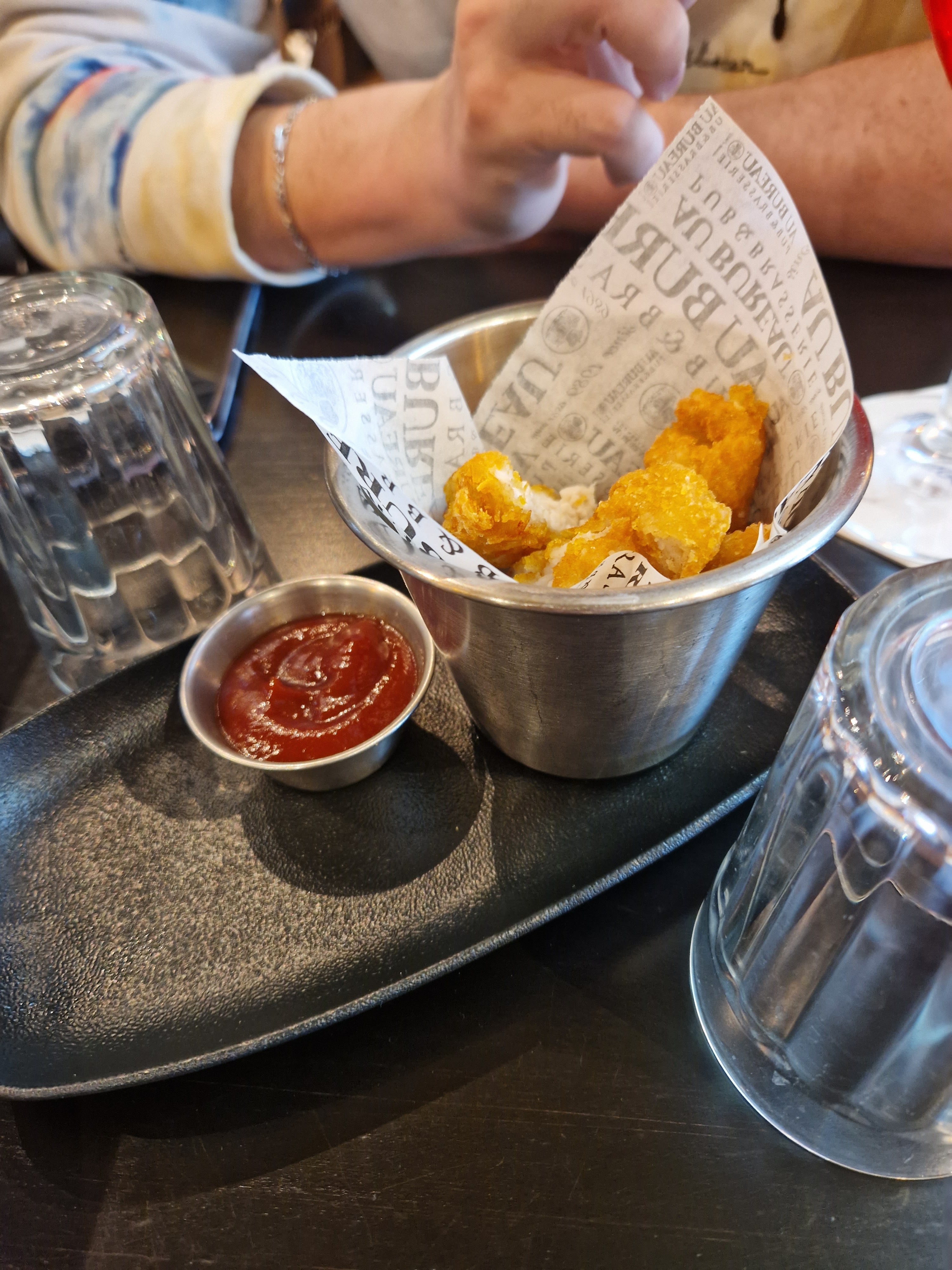 Repas très bon copieux rien à dire . Service agréables et endroit vraiment sympa.. Par contre en entrée nous avons pris des crevette panée et des oignons rings ... jamais autant été déçu. Bien que très bon .. payer 6€90 pour 4 crevettes je trouve ça hallucinant .... Vraiment dommage Quand on compare chez les concurrents nous avons le double de finger food au même prix