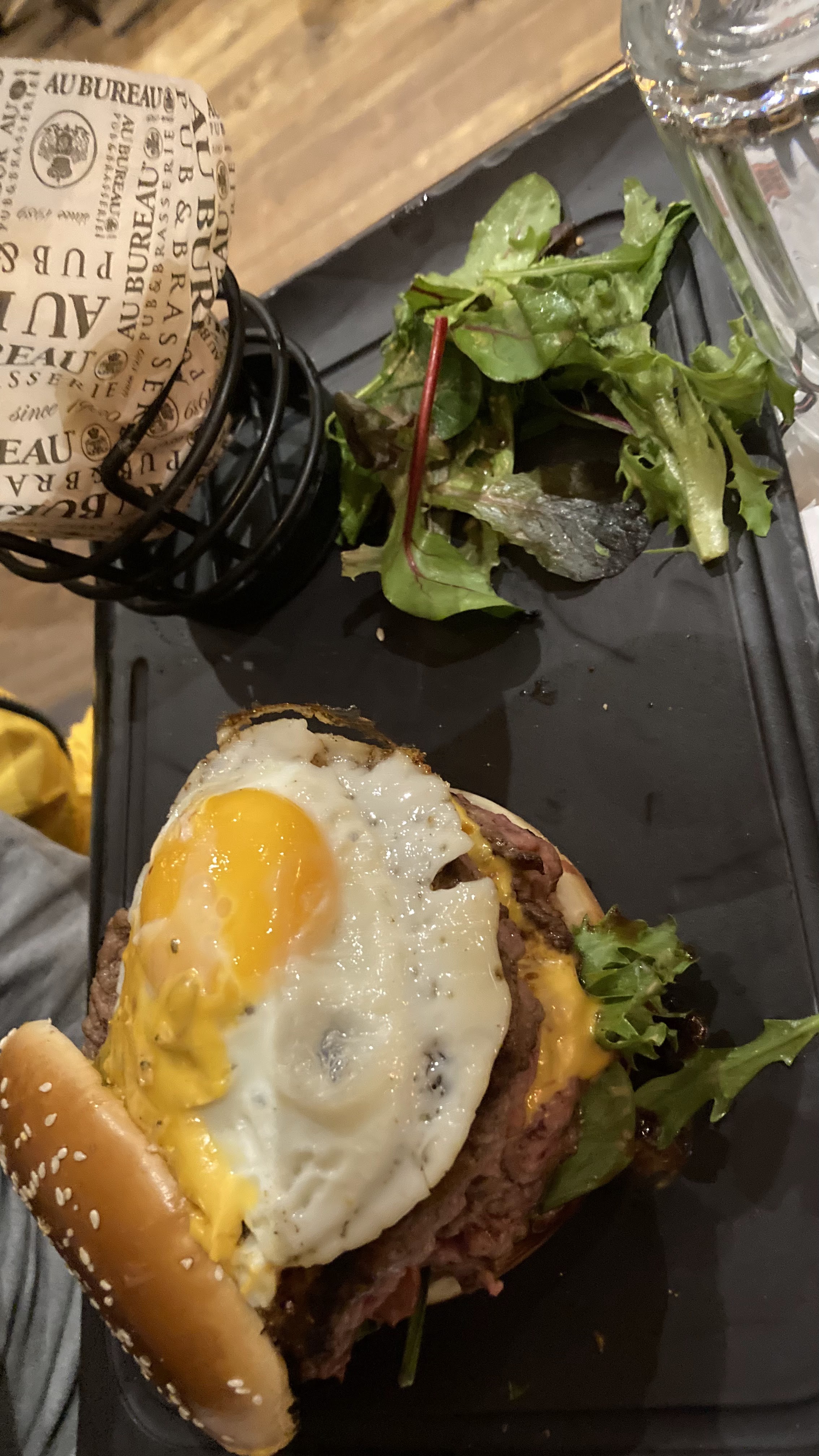 Accueil efficace et chaleureux avec une serveuse souriante qui nous place plutôt bien pour 4 personnes. Attente très courte au niveau du plat ainsi que du du dessert. Serveur très surprenant avec un professionnalisme agréable au ressentit ainsi qu'une petite graine d'humour. Nous étions septiques a notre arrivé dans cette brasserie, cependant nous nous sommes régalés sur toute la ligne. Si je devrais parler des points négatif, je dirais que le repas en lui même est excellent certe, cependant nous avons trouver légèrement cher les burgers. Nous reviendrons avec plaisir Au Bureau, une plutôt bonne ambiance dans l'ensemble et de très bon burgers, veggie ou non.