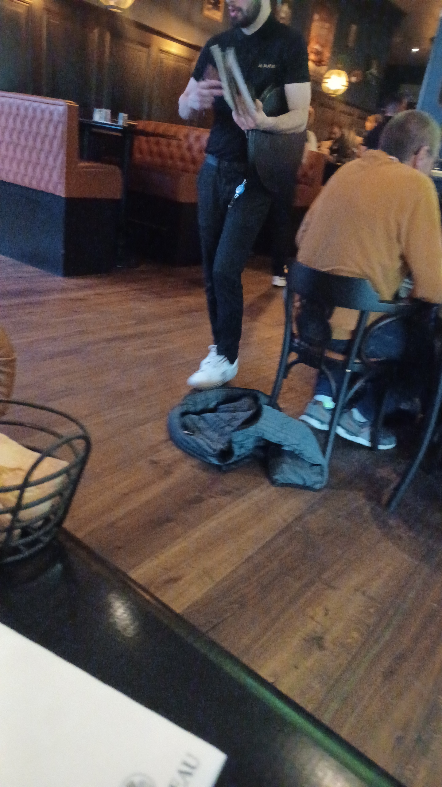 Quand nous sommes arrivé, la manager était occupée (pas de soucis), les deux serveurs qui sont passés devant nous, ne nous ont pas regardé, ni même dit : bonsoir, ma collègue arrive.(dommage).Sinon tout le reste c'est absolument bien déroulé! Le service était super ( je ne connais pas le prénom de notre serveur), mais il était souriant, efficace, à l'écoute. Les plats sont arrivés très rapidement, ça tombe bien on avait faim! Le match était sur plusieurs écrans et ça c'est stylé! A bientôt le bureau!