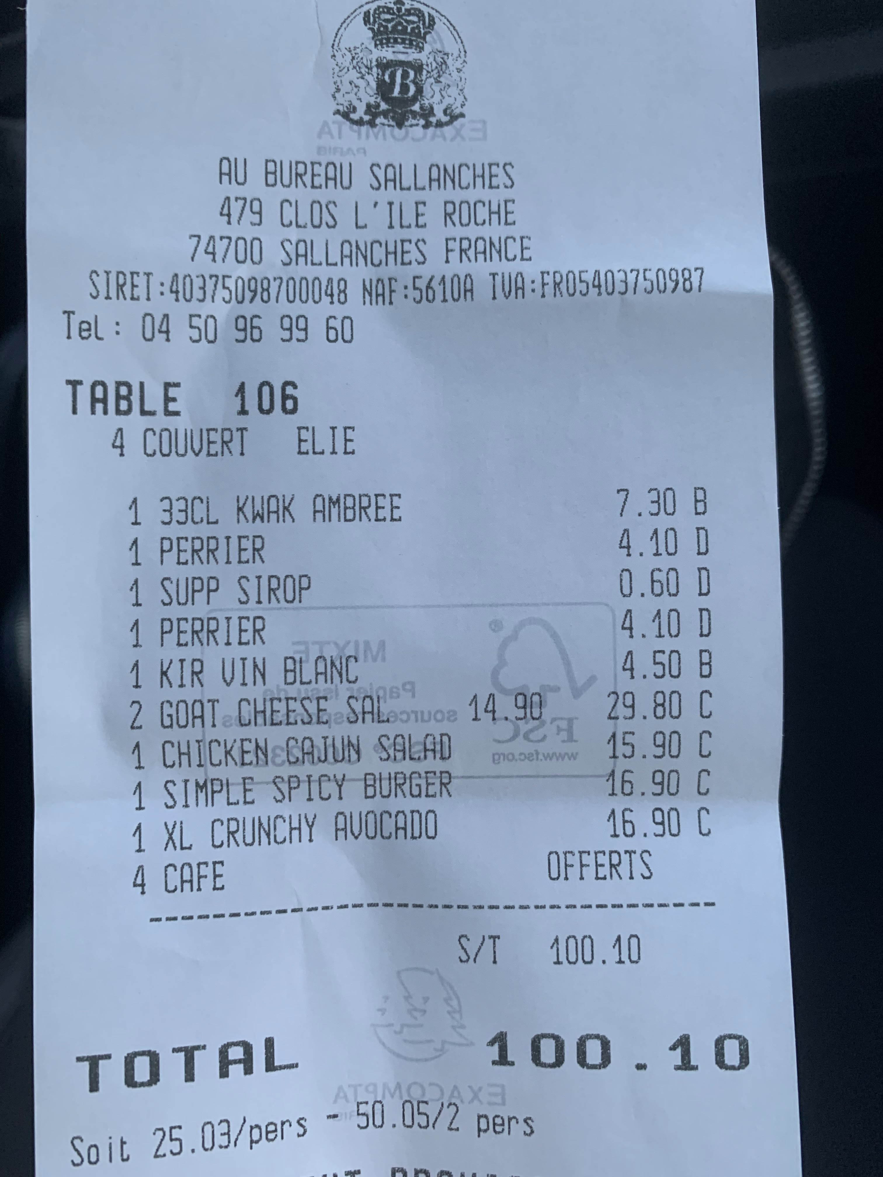 Comme toujours les Au Bureau son un très bon choix de restaurants On ne peut jamais être déçu sur la cuisine, toujours un régale. Le service était très bien avec une équipe chaleureuse et accueillante (c'est toujours un plus). L'équipe est très réactive et on pus mange dans des temps très court et ça c'est super. Tous petit moins c'est la déco Halloween un qui fait du bruit un peu dérangeant mais si c'est juste pour cette période ça va. Sinon merci encore pour ce repas je recommande fortement pour les gens de passage sur l'A40 pour une pose repas.