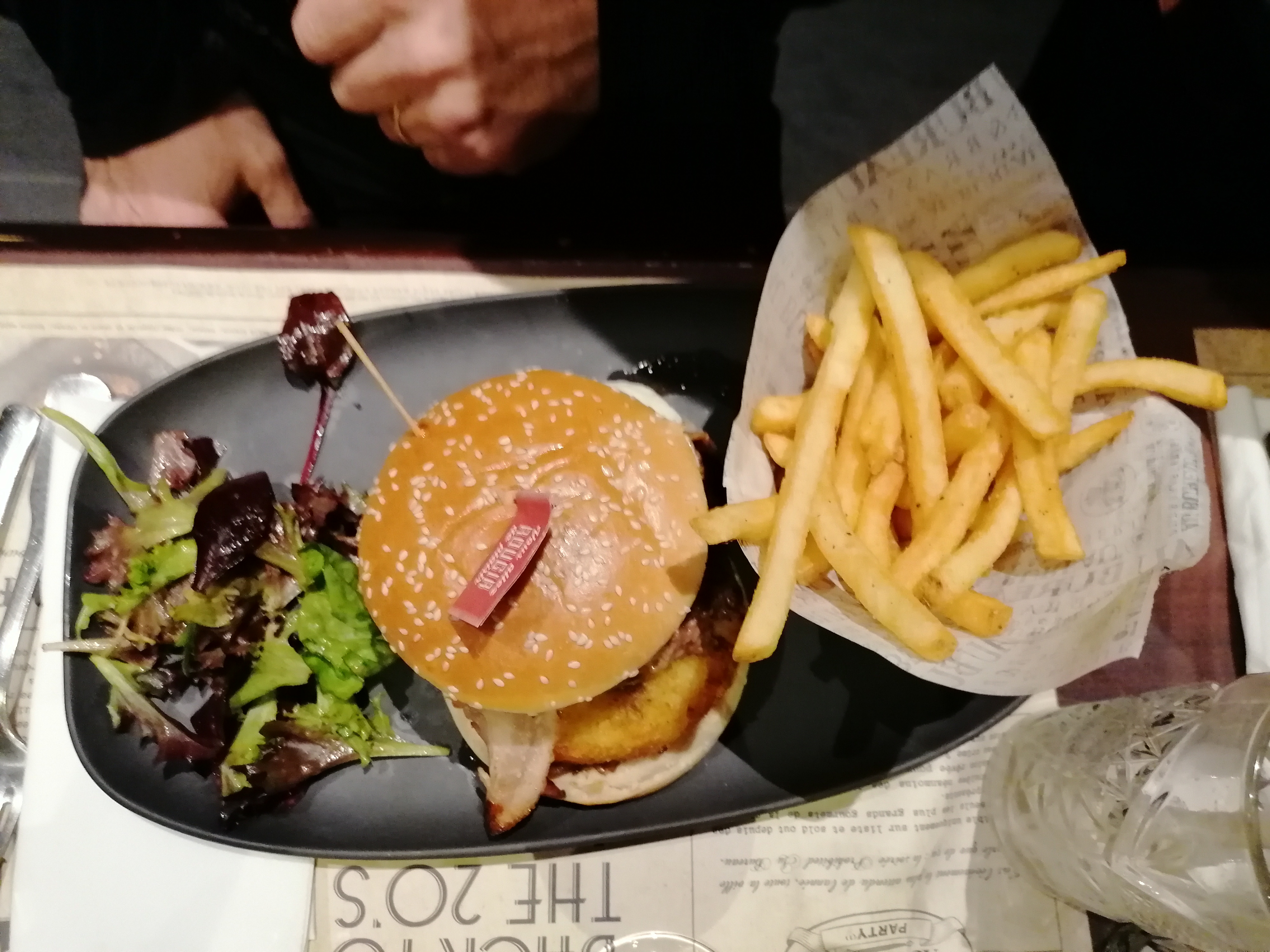 Beaucoup beaucoup de monde et peu de serveurs. Service très long du coup on a pas pris de dessert. Lors du service de mon plat les frites sont tombées à terre et quand j ai coupé mon poulet pané il était cru. Le plat a été changé mais mon fils avait déjà fini quand j ai été servie. Geste commercial toutefois à souligner :10% sur les plats (pas sur la note^^). Dommage 1ere expérience qui pour le moment ne me donne pas envie de retenter.