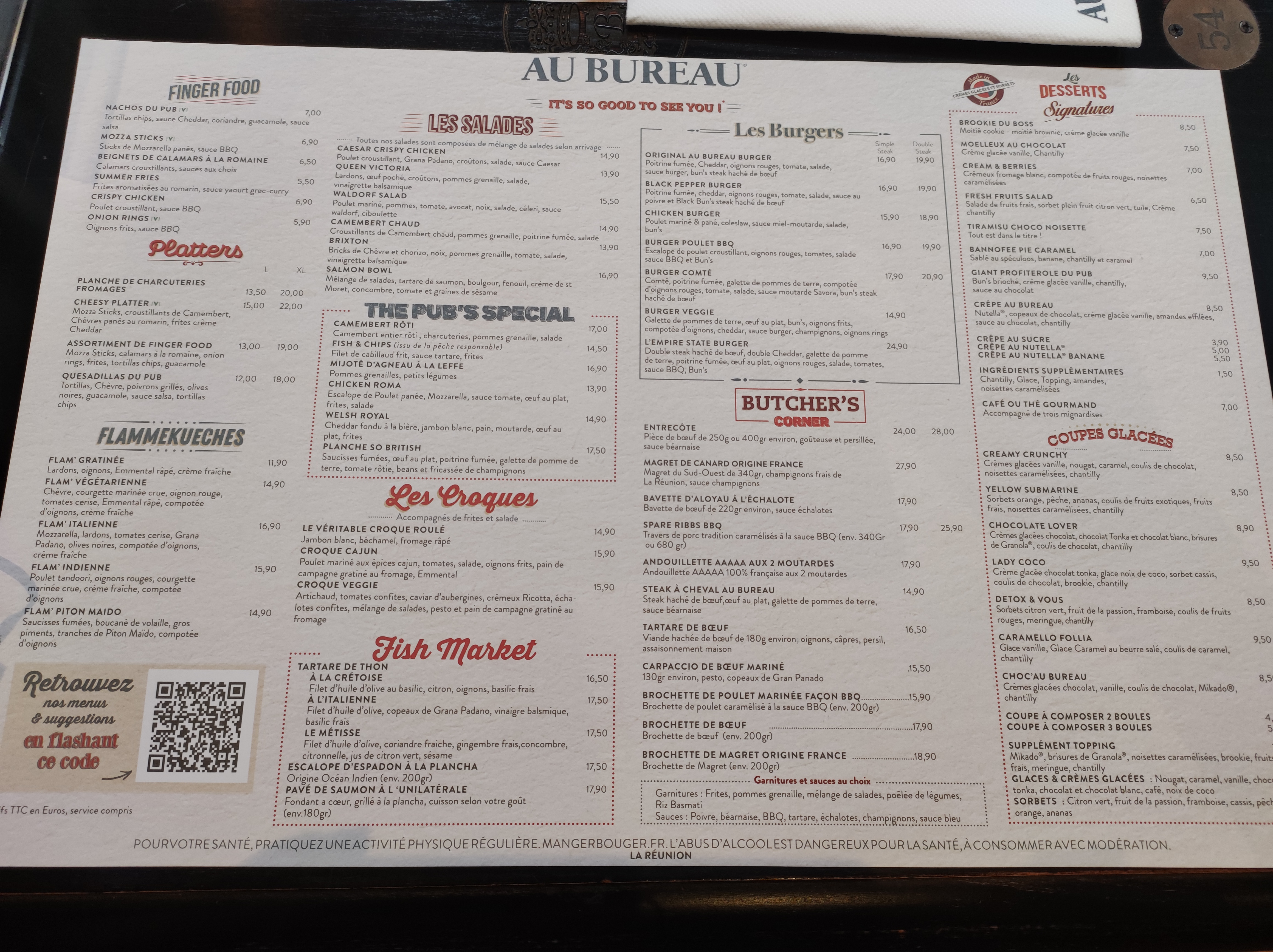 Excellent juste parfait pour une première découverte on a bien été reçu et très bien mangé je recommande vivement merci Au Bureau La Réunion a bientôt