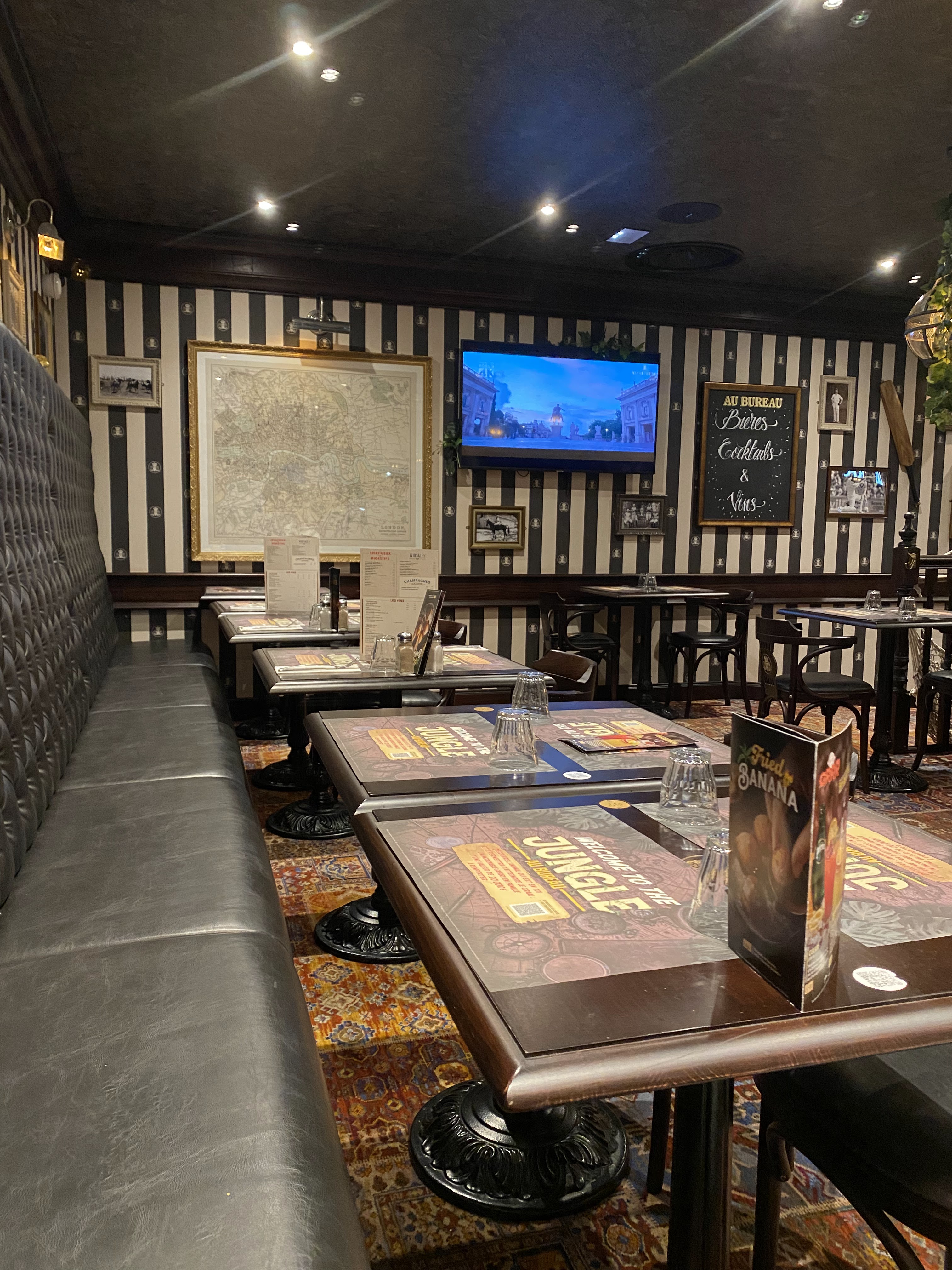 Une super expérience ! J'y ai fait une réservation pour un gros groupe (20 personnes) pour un repas le soir, et tout était parfait. Les serveurs et serveuses au top, pleins de bonne humeur et patients en plus d'avoir le sourire. Les plats étaient excellents, cette brasserie à l'avantage d'avoir un large choix pour tous les goûts et à des prix raisonnables, et on sent que les recettes sont maitrisées. L'atmosphère façon pub anglais est géniale. Vous l'aurez compris, je vous recommande le Bureau mes yeux fermés. Un grand merci à l'équipe pour cette fabuleuse soirée et au responsable pour sa gentillesse et sa bienveillance !