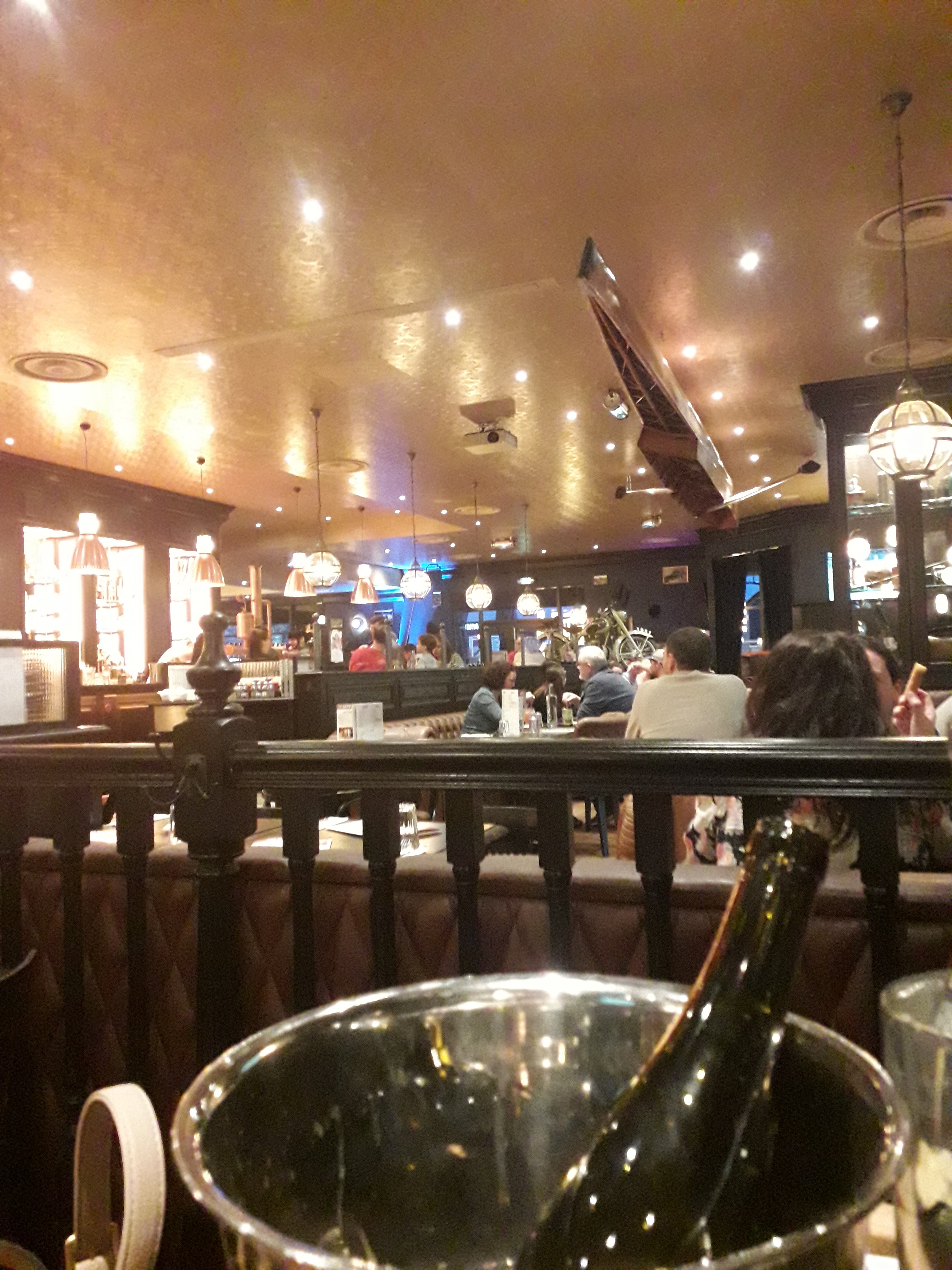 Je suis désespéré de voir combien de gens peuvent bouffer de la mère à ce prix! Pardon d être grossier mais je ne vois aucun autre moyen de me d'aire entendre!!! Un fisch and slips à 17euros et quelques pour avoir dans son assiette un poisson pané findus......je vous laisse apprécier le reste. Pas étonnant que la France puisse reculer au niveau gastronomie..... Même s il be s agit pas de gastronomie nous sommes quand même loin mais très très loin de la brasserie pourtant affichée sur le fronton de l établissement. Accueil sympa et efficace mais pour le reste BASTA