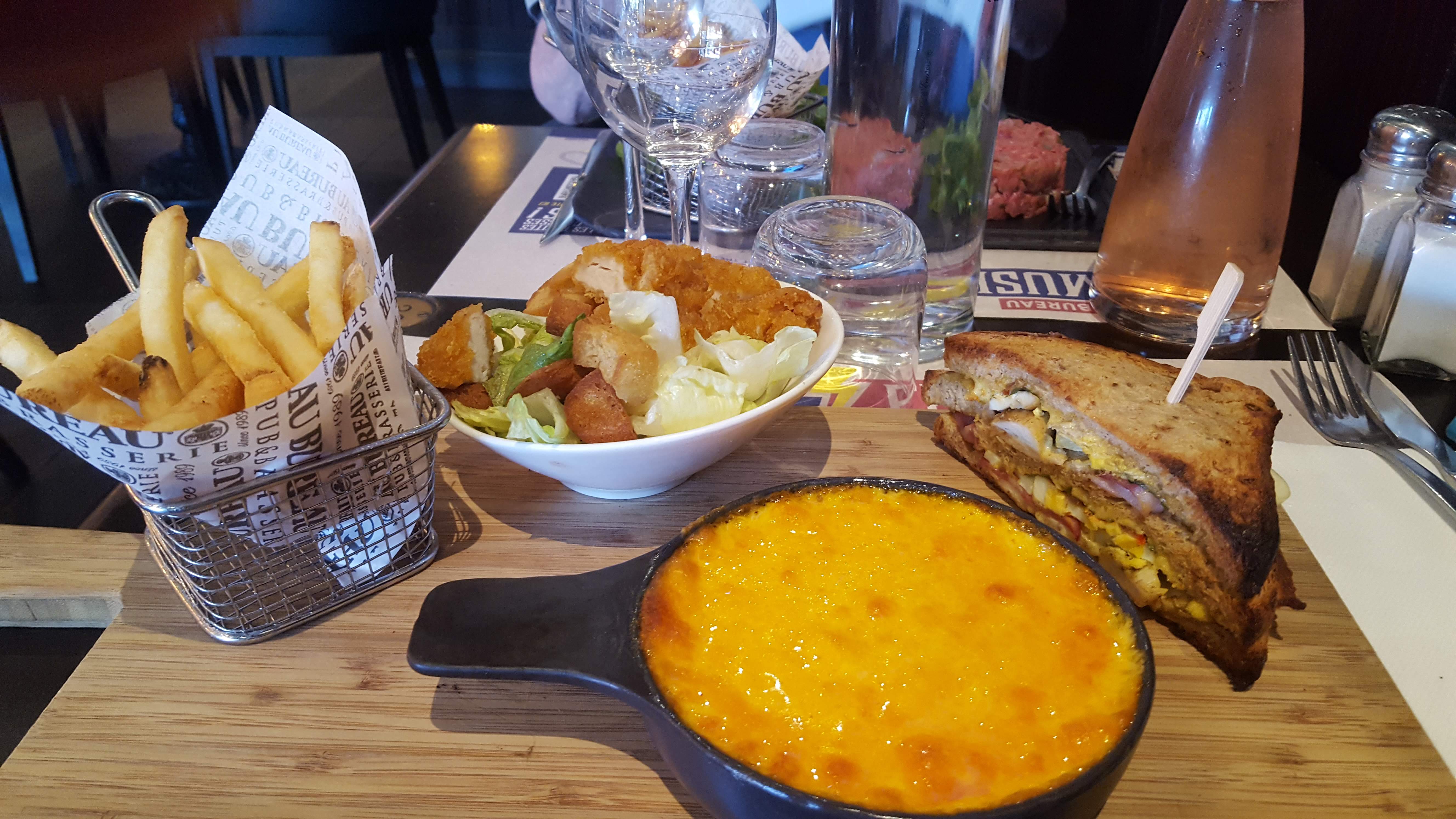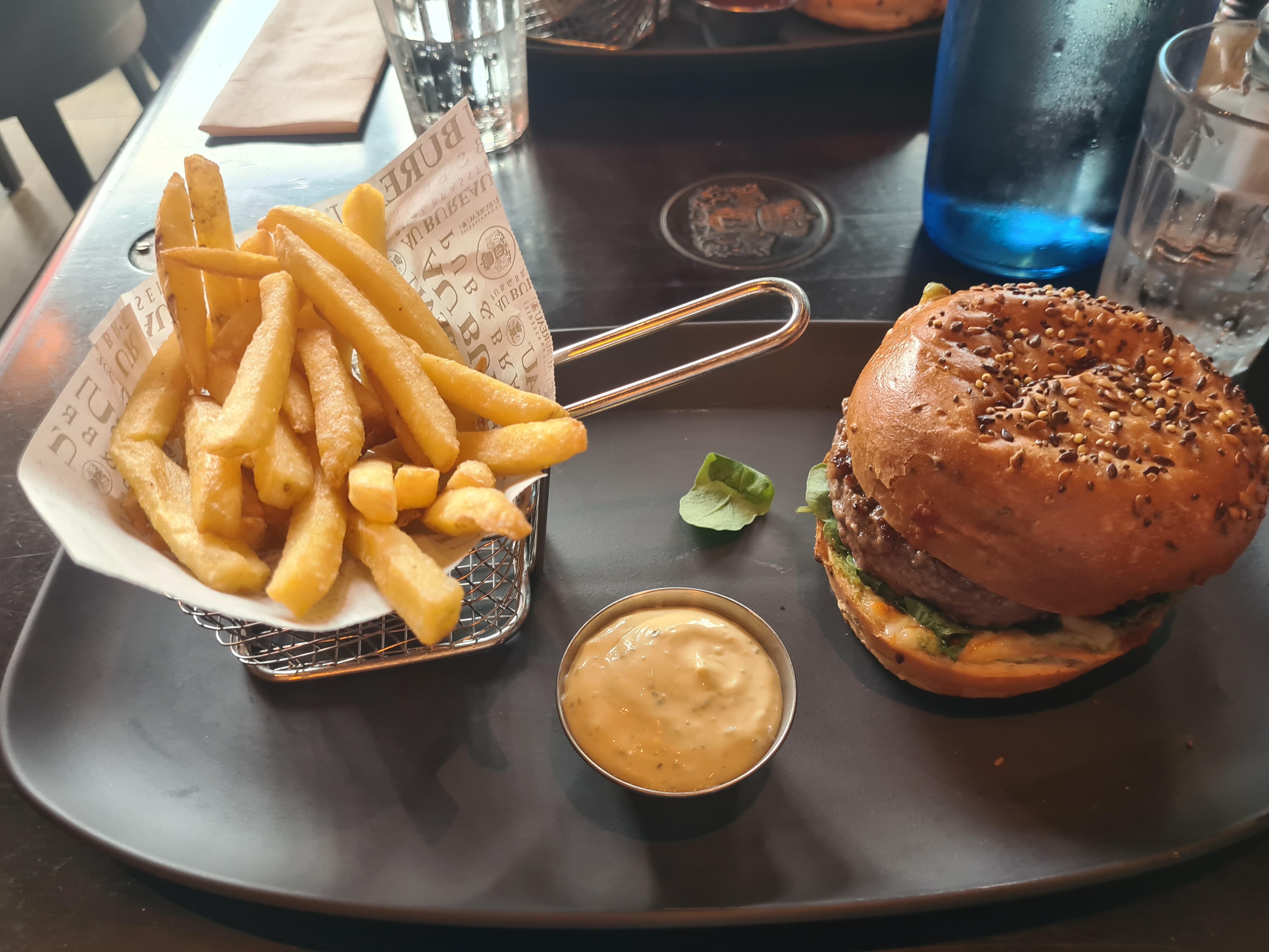 Agréable pour boire un verre, mais à éviter pour se restaurer. Même si on ne s’attend pas à de la cuisine maison dans ce type de chaîne, les burgers sont secs (il manquait d’ailleurs la poitrine fumée dans le mien et je cherche encore le cheddar…), les frites surgelées pas assez cuites n’ont aucun goût. Il manquait également les sauces qu’on a dû réclamer et le personnel pourrait être plus souriant.