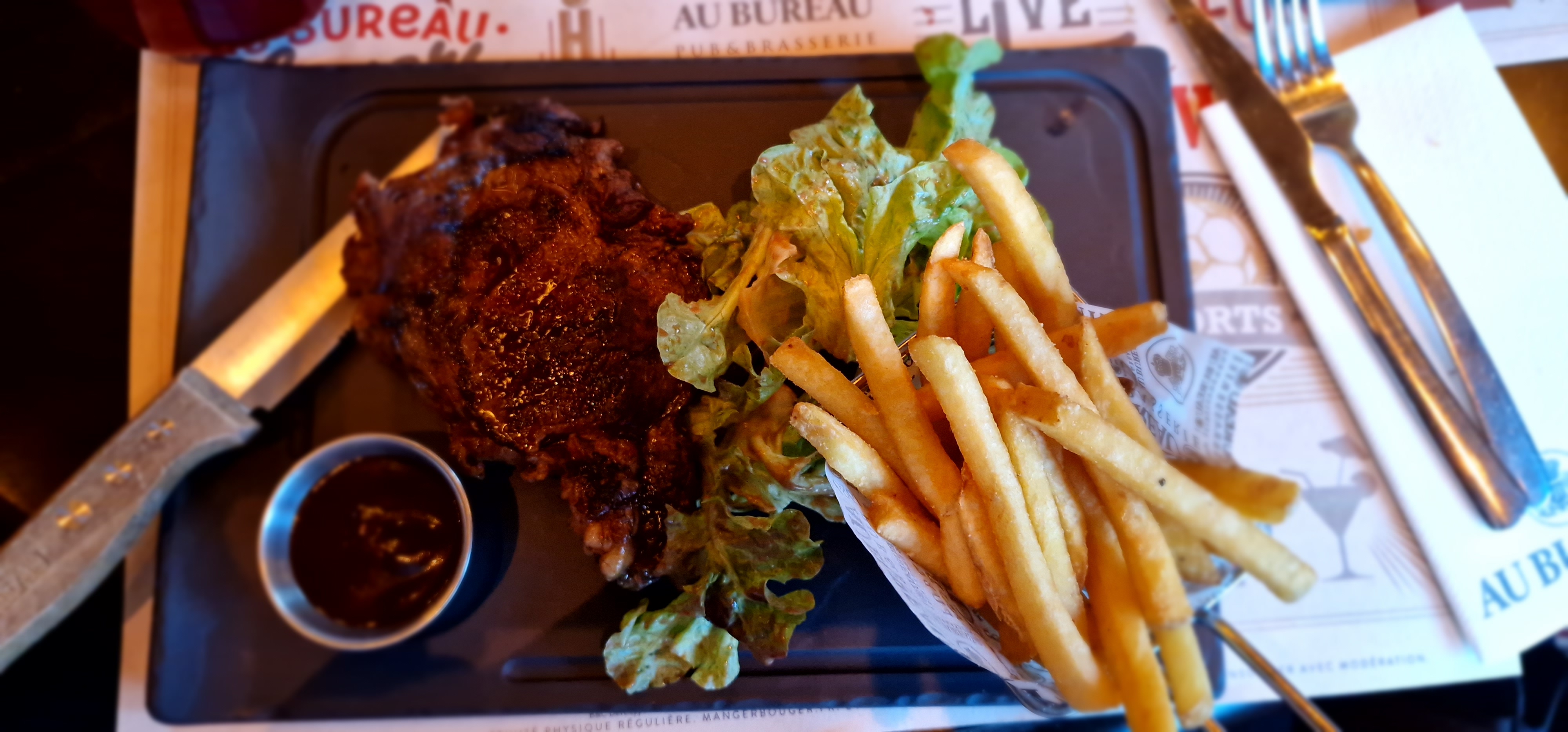 Pour commencer je remercie au bureau pour nous avoir accepté à 21h30 puisque que le restaurant d'à côté nous refusait l'entrée alors qu'au téléphone il était d'accord... Je vous conseil donc vivement d'aller Au Bureau les plats sont très bon, l'accueil et les serveuse sont très gentille et présente si besoin. Le prix est très honnête pour là qualité du repas et il est très bien situé si vous voulez vous amusez après ( cinéma, bowling, etc... )