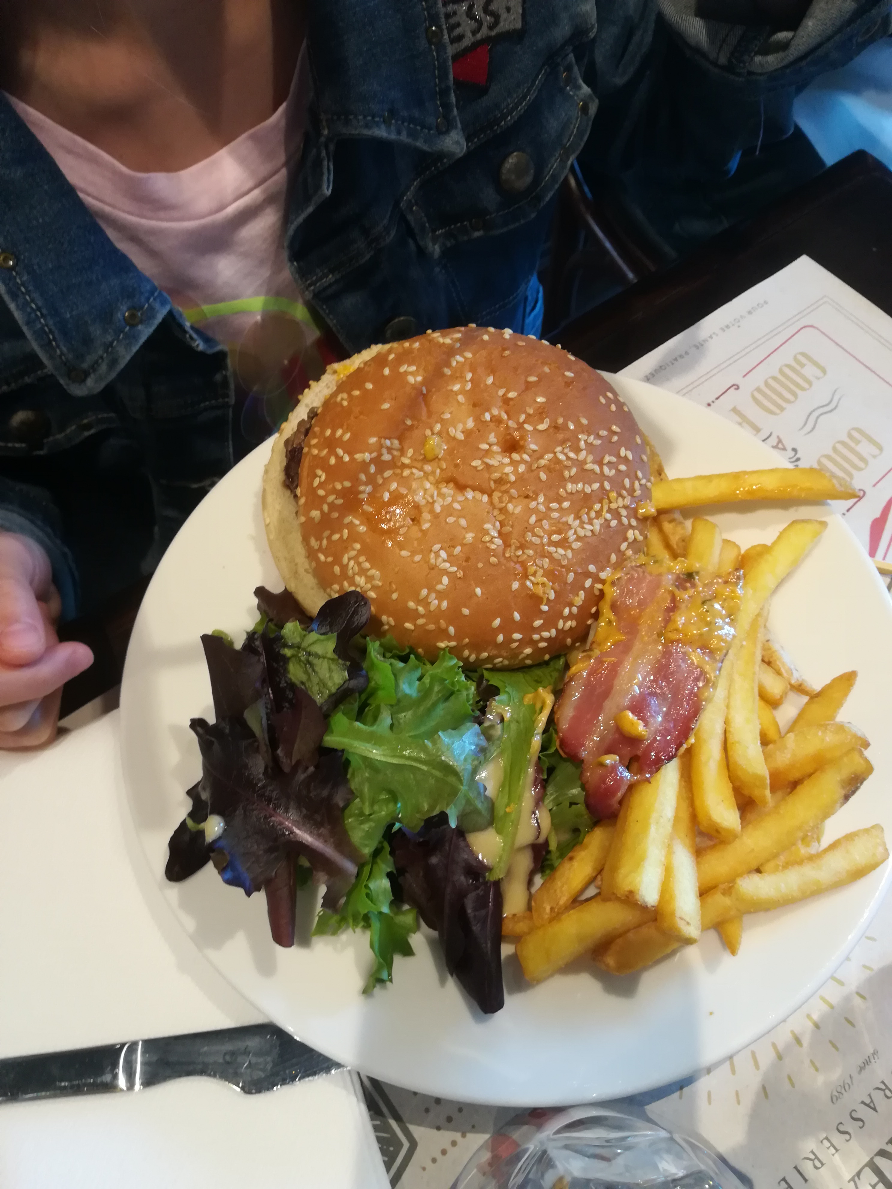 Brasserie très bien décorée et agencée, mais beaucoup de bruit , donc endroit à venir entre amis mais pas pour repas en amoureux. Nous sommes venu un jour où il y avait beaucoup de monde et nous avons été servi en 30 minutes donc très raisonnable. Nouvelle carte avec certain burger qui nous ont donné envie. Finalement c'était sans plus. La galette de pomme de terre doit être cuite en friteuse car très grasse. C'est dommage... Personnel très agréable