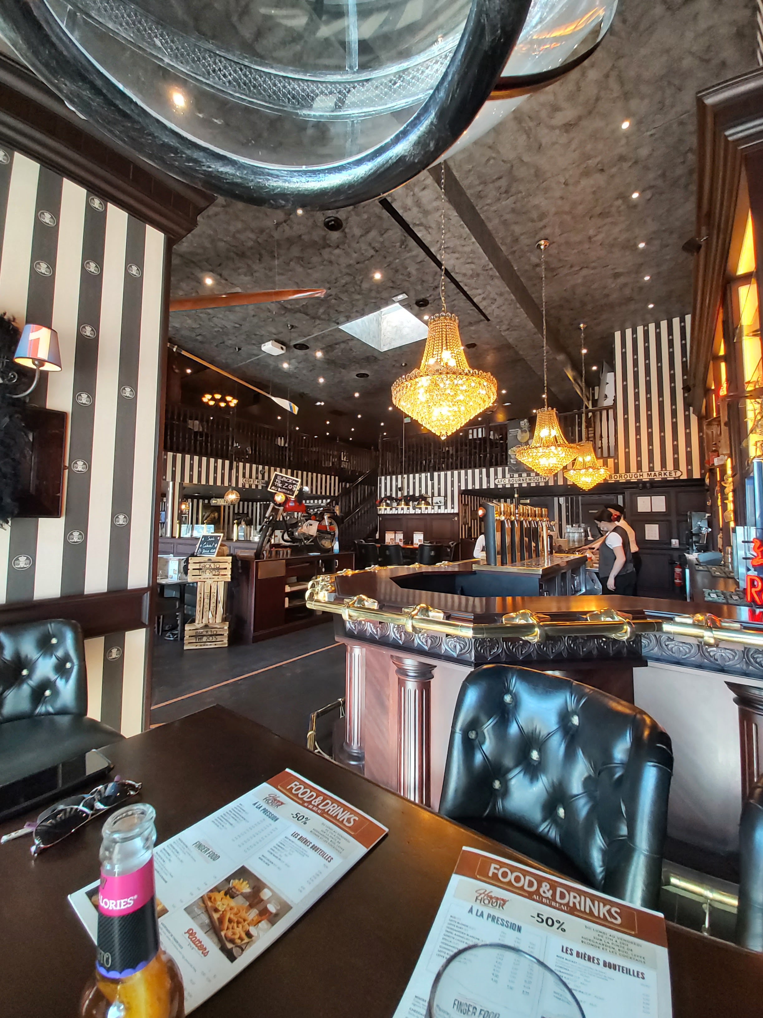 une soirée plutôt mouvementée. l’ambiance ne mérite qu’une étoile, pour la simple raison que sans notre groupe d’amis, nous nous serions ennuyés à mourir. ce fut cocasse que nous ayons été quasi forcé de devoir nous même corriger les serveurs à la caisse pour régler l’addition, à croire que certains voulaient arrondir leur fin de mois sur le dos des honnêtes gens. les prix étaient également aberrants, payer si cher pour des burgers à peine plus gros que ceux du Mcdo d’en face, c’est assez osé. j’ai presque oublié les cocktails coupés à l’eau. je demande à tous ceux qui voudraient manger quelque part pour passer une bonne soirée, de ne pas se rendre là bas. Bonnes vacances.