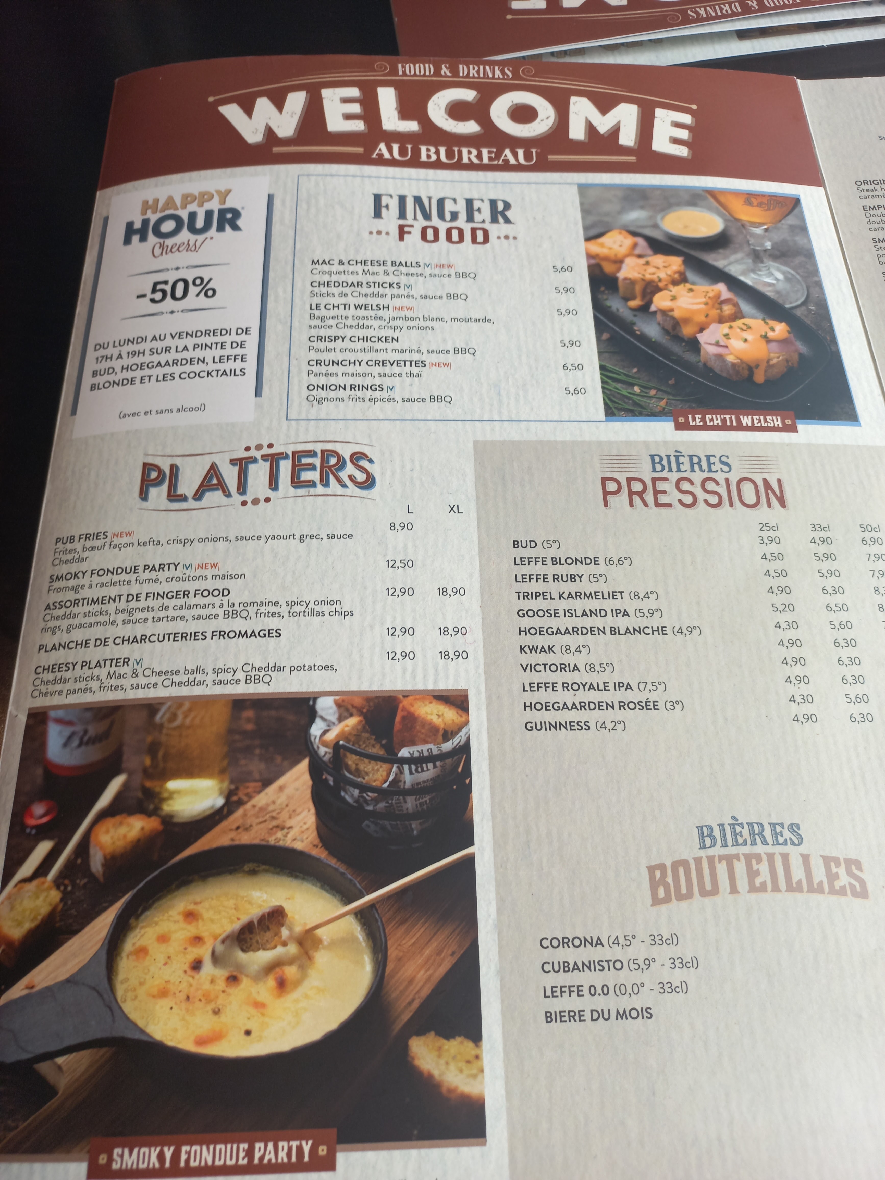 On y mange plutôt bien. Meme si on a bien senti que le welsh n'était plus le même qu un an auparavant.. nettement moins de goût. Le burger et l entrecôte étaient très bon. Le service laisse à désirer. On a reçu nos plats avant nos cocktails qu'il a fallut demandé. On a attendu 30 minutes nos desserts (3 glaces), alors que le resto se vidait. Pour les glaces comme pour les cocktails, quand on a réclamé, on les a eu en moins de 2 minutes. La déco et l'ambiance que ca crée est sympa. Happy hors de 17 à 19h.