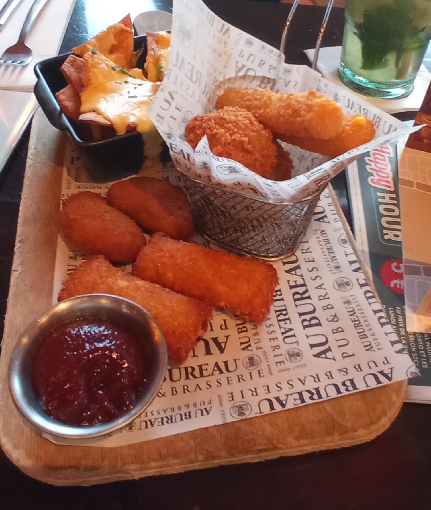 Super bar/restaurant «au bureau». Habitué de cette chaîne en région parisienne, celui de Lens est tes bien situé. Ambiance chaleureuse, personnel très souriant et sympathique. Super moment pour regarder la coupe du monde et un Serbie-Brésil. Petite salade végétarienne et caipirinha. Un moment entre collègue en déplacement qui unie des hommes.