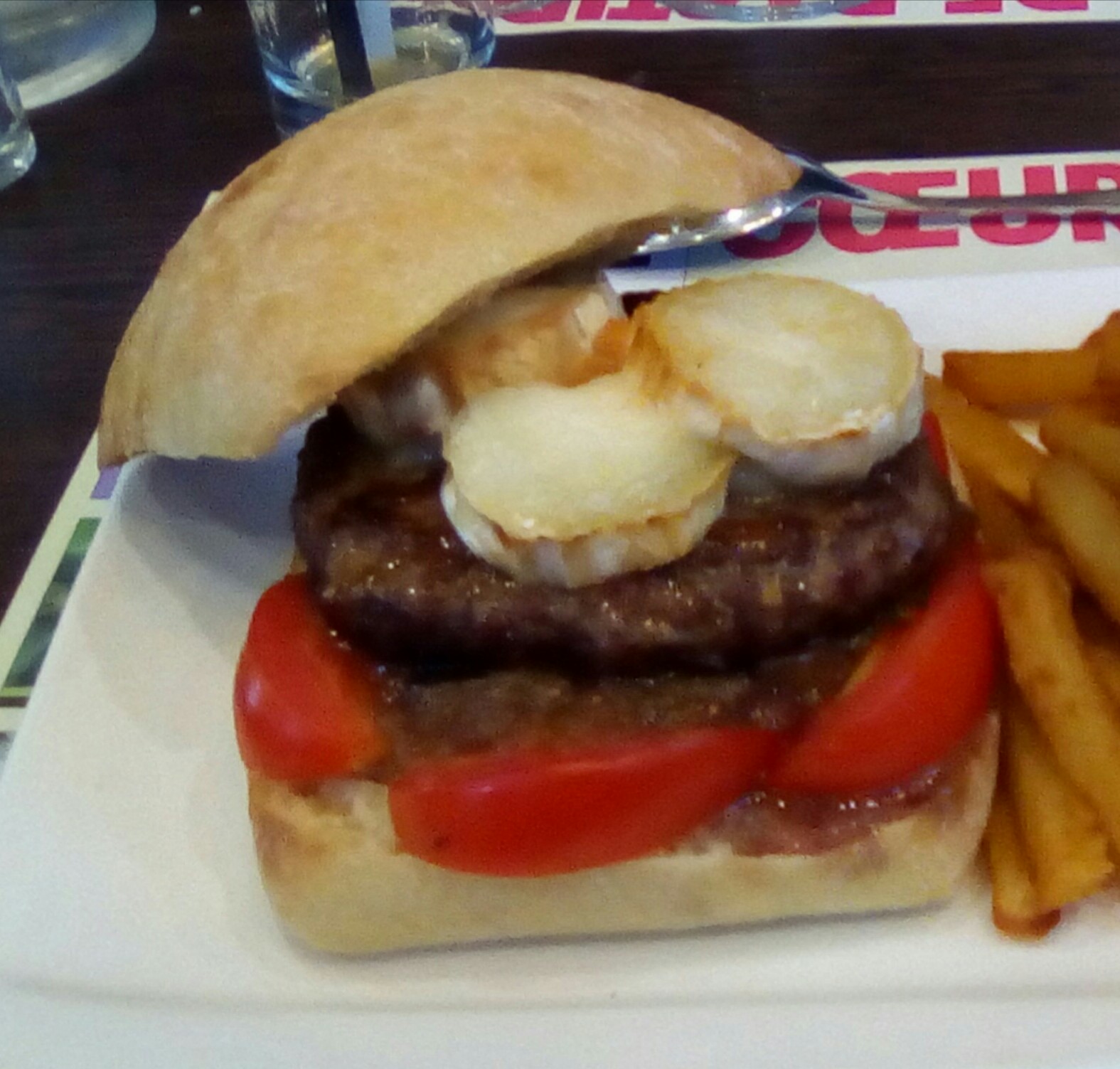 Burger veggie très fade et sec, etiquette retrouvée dans la salade mais lieu vraiment sympathique, les serveurs sont très gentils.