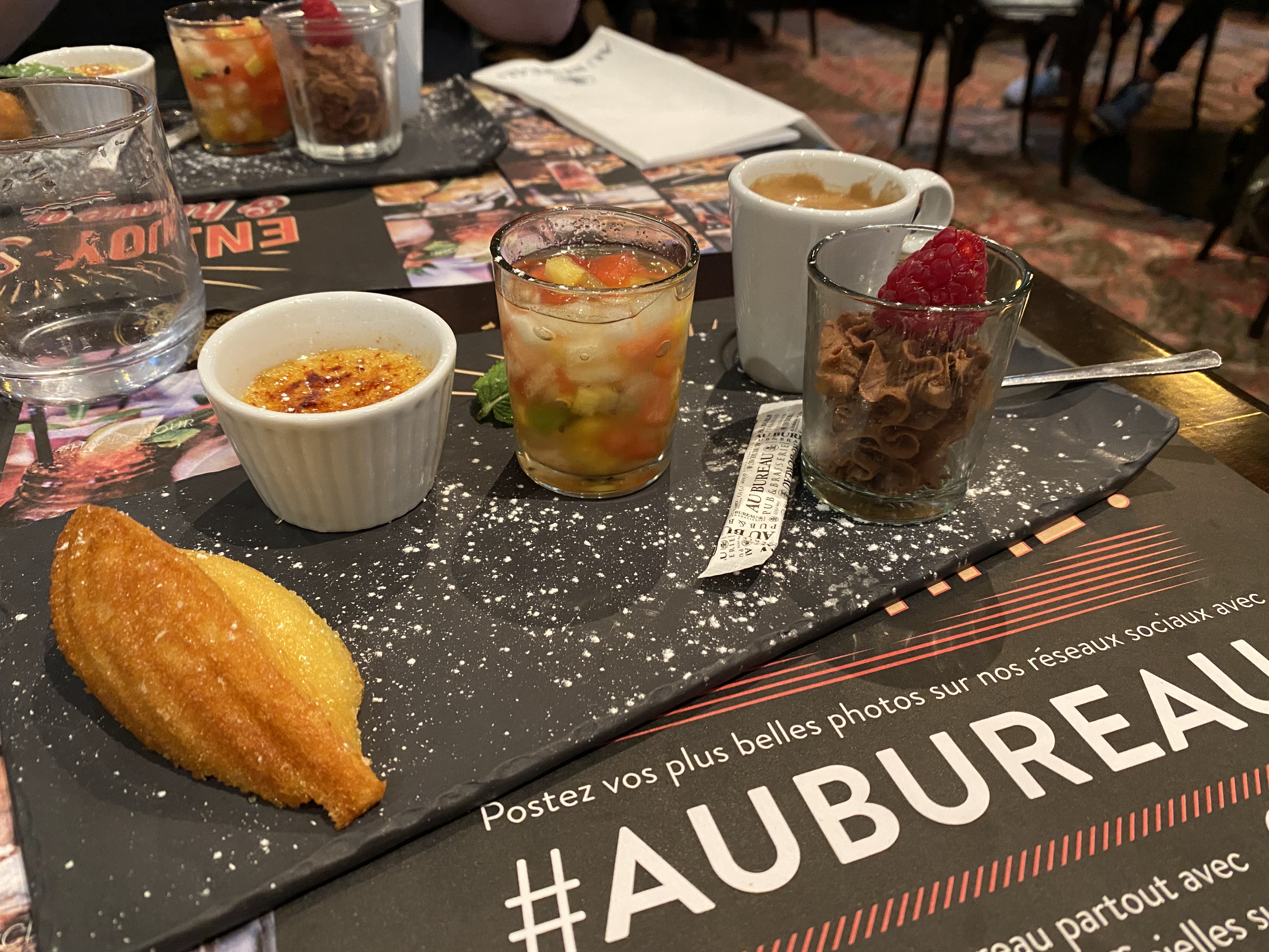Nouvelle visite en octobre 2020, à nouveau suite à un massage en duo chez Les Soins O' Naturels (juste en face) Question nourriture, très satisfaite comme toujours, j'ai adore les nouveautés toujours fréquentes sur la carte et je tenais à apporter une petite mention spéciale covid-19, bravo pour les masques en plexi qui redonnent un côté humain au restaurant ! Vivement la réouverture post confinement#2 ! Nous étions de passage chez Les Soins O' Naturels et Cécile, la gérante a recommandé de prendre notre repas au Bureau. C'est une enseigne que l'on connait bien puisque nous fréquentons souvent celui de Roncq, alors nous n'avons pas hésité ! Et comme toujours, nous avons été très satisfait par le Bureau, la nourriture y est bonne et copieuse, nous avons été servi rapidement, les serveurs étaient serviables, prévenants et courtois. J'ai découvert le nouveau dessert de la carte, le Lemon Curd Cheesecake et je me suis régalée, très frais et léger après un bon steak tartare ! Le midi, le plat du jour est d'un excellent rapport qualité-prix ! Nous repasserons par le Bureau lorsque nous reviendrons nous faire masser juste en face dans quelques semaines ! Deux bonnes adresses à garder !