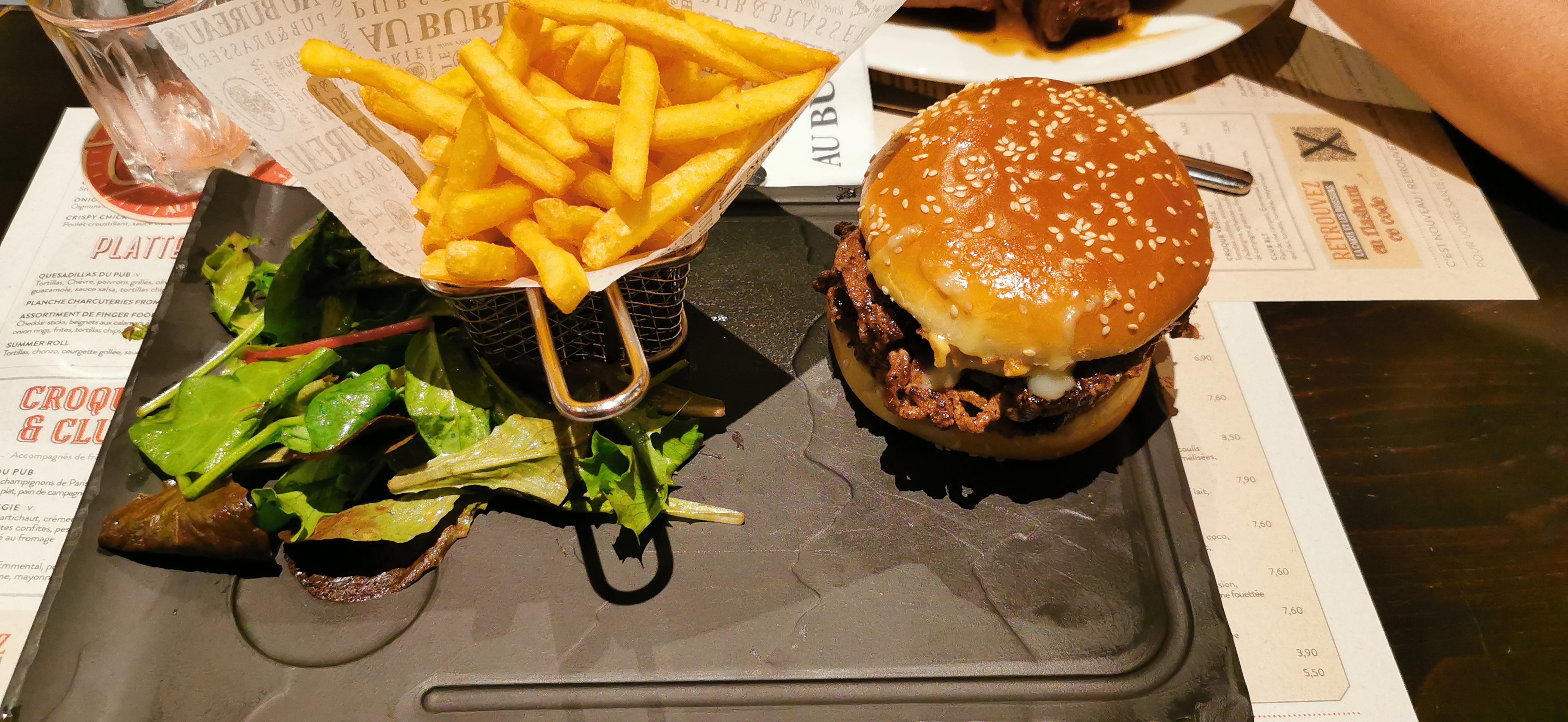 Une ambiance sympa mais le hamburger avec qq frites quelconques 2 feuilles de salade a 16 euros, je ne m'y fais pas