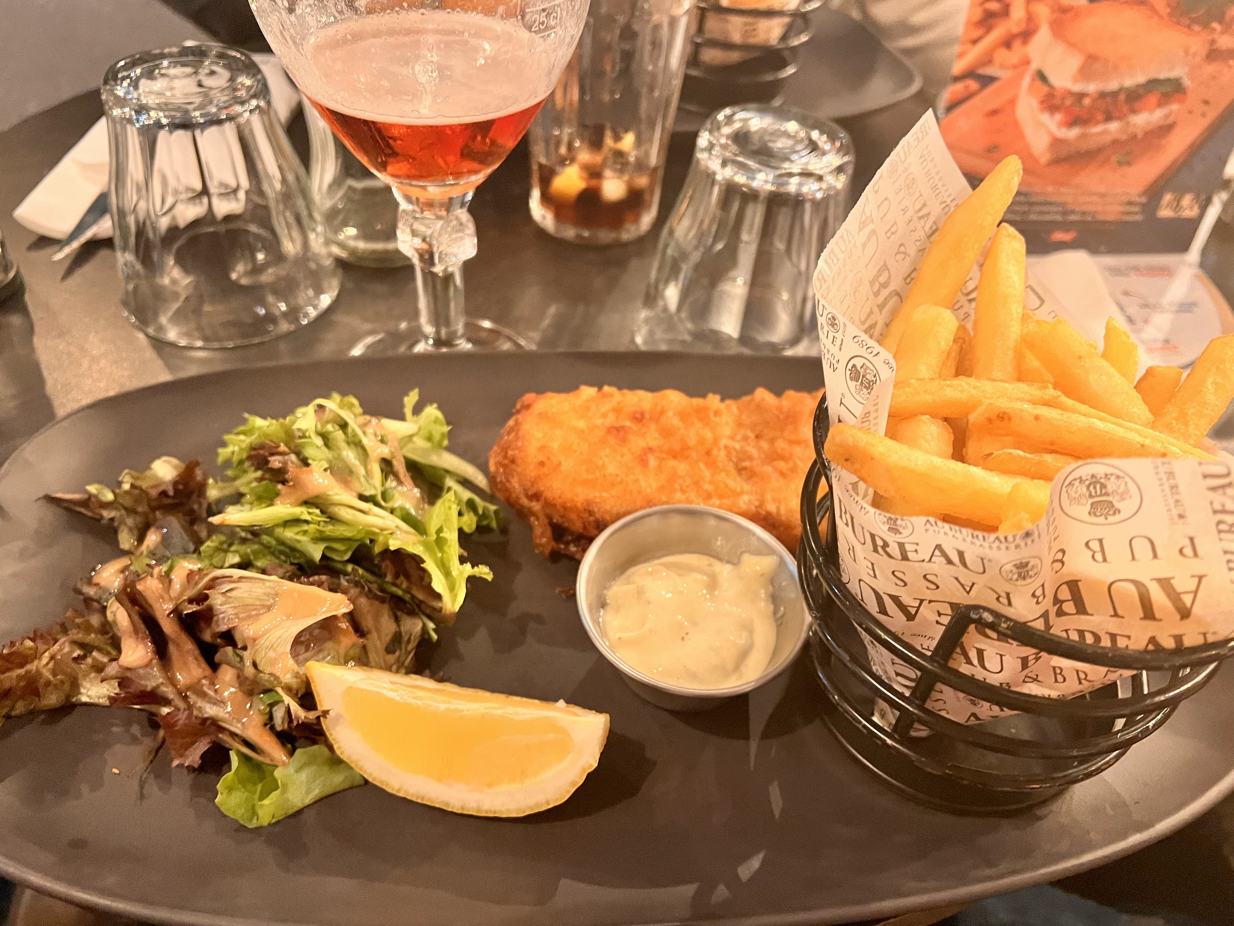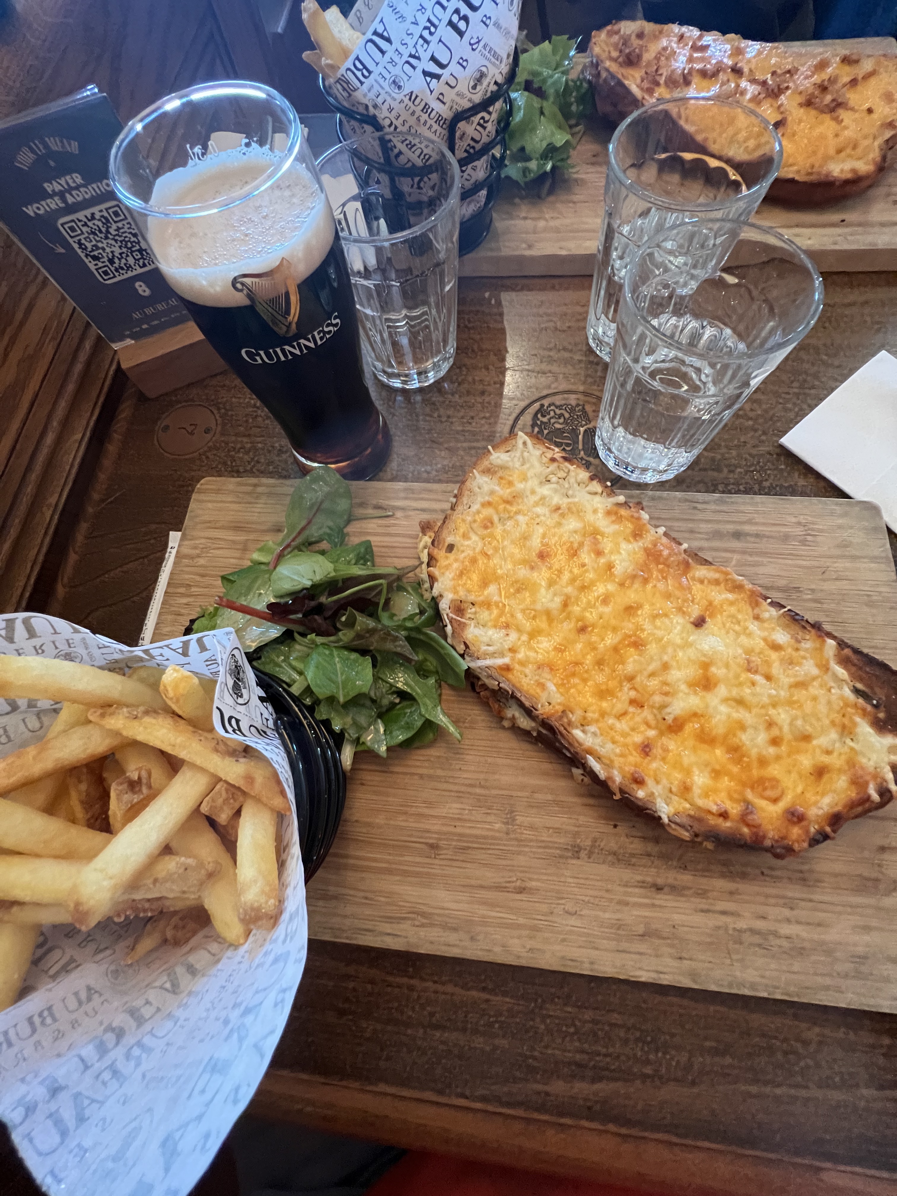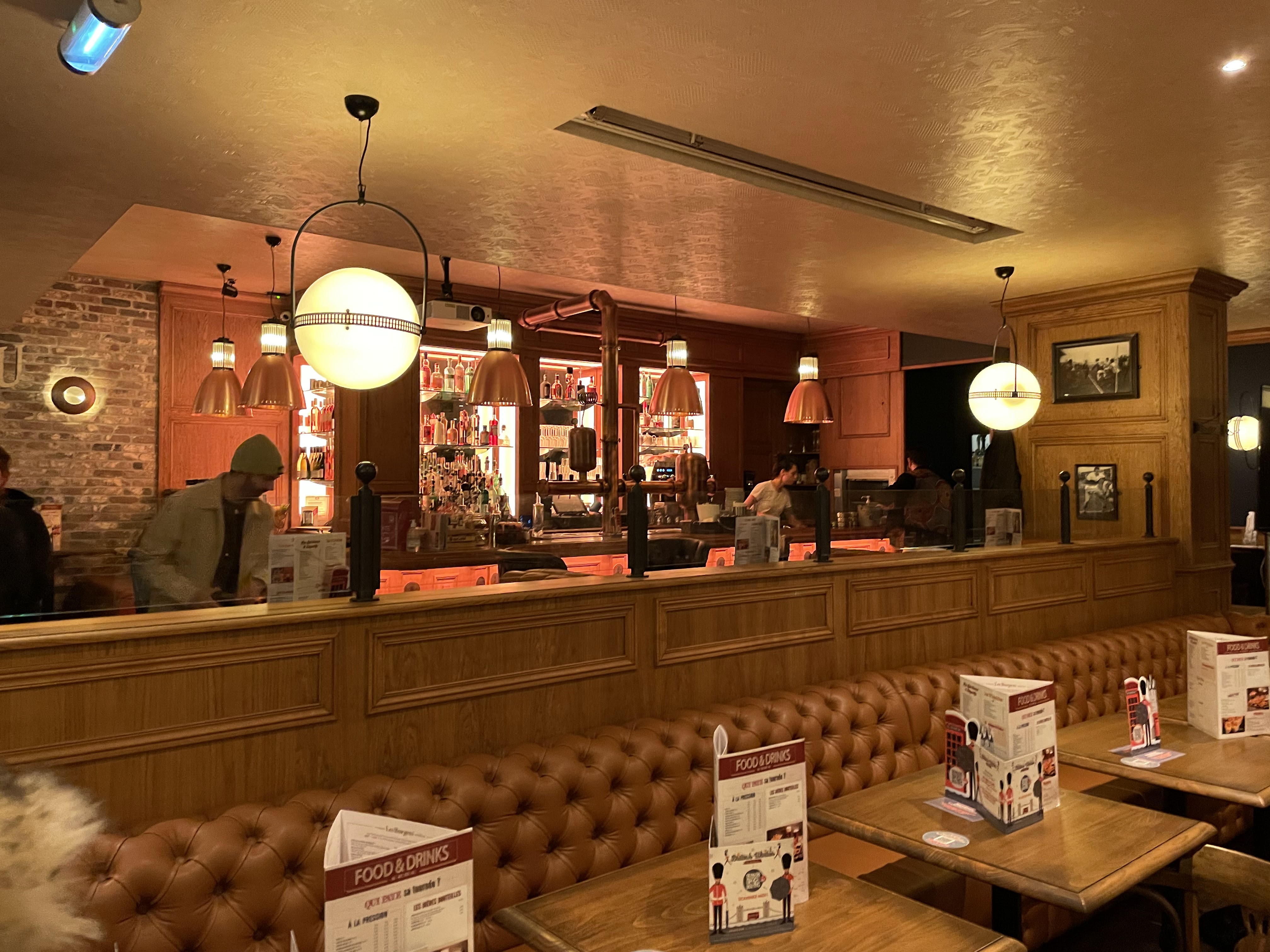 Nourriture correcte, typique de ce que l on peut trouver dans un pub. Ce n est pas du fait maison ou du frais mais c est plutôt bien assemblé. Par contre leur GROS problème est le service : une lenteur , une lenteur a vous faire quitter la table !!! Les serveurs certes bien attentionnés sont complètement désorganisés, le barman est dans le jus complet….35 mn pour être servis de 2 bières….on a abandonné l idée de commander une deuxième conso car personne ne consentait à venir… et malheureusement c est la même chose à chaque fois que je viens dans cet établissement…du coup ma femme ne veut plus y mettre les pieds…voilà allez y vous faire votre propre avis mais choisissez une période creuse