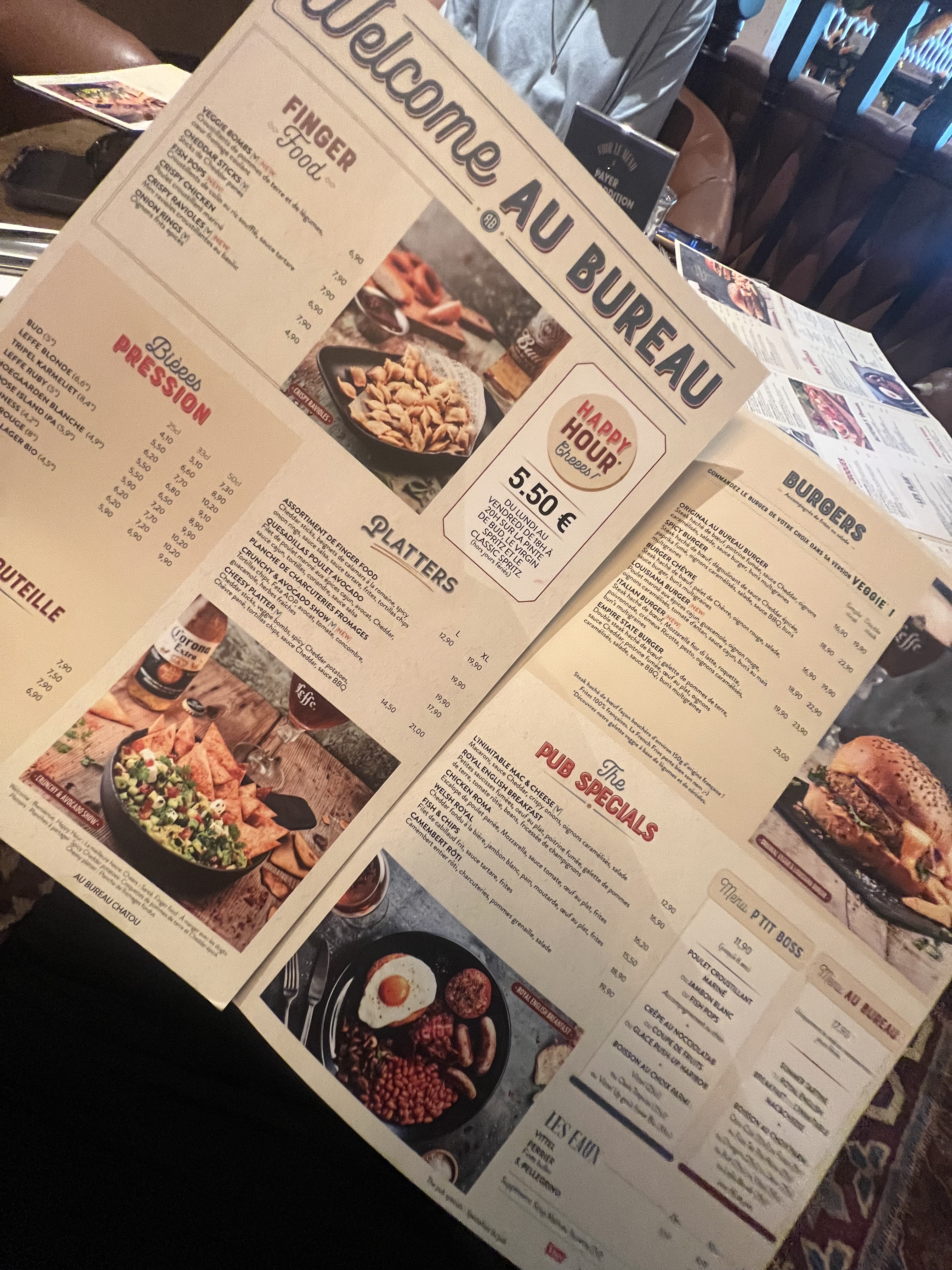 Je suis arrivé au Bureau suite à une réunion à Chatou. Honnêtement, j'ai oublié en entrant et en lisant le menu que l'endroit est une chaîne. J'étais déjà allé dans un bureau du sud de la France et cette expérience ne m'avait pas du tout plu. Cela dit, ce Bureau a été une expérience complètement différente. Notre serveur et le reste des serveurs étaient vraiment à leur écoute. Ils ont fourni un excellent accueil et un service attentionné. La nourriture que nous avions comprenait une salade César et leur Burger d'Aubrac étaient très bien préparés et les prix étaient une pause bienvenue de Paris. Je reviendrais ici tant pour le service, la nourriture et les prix.