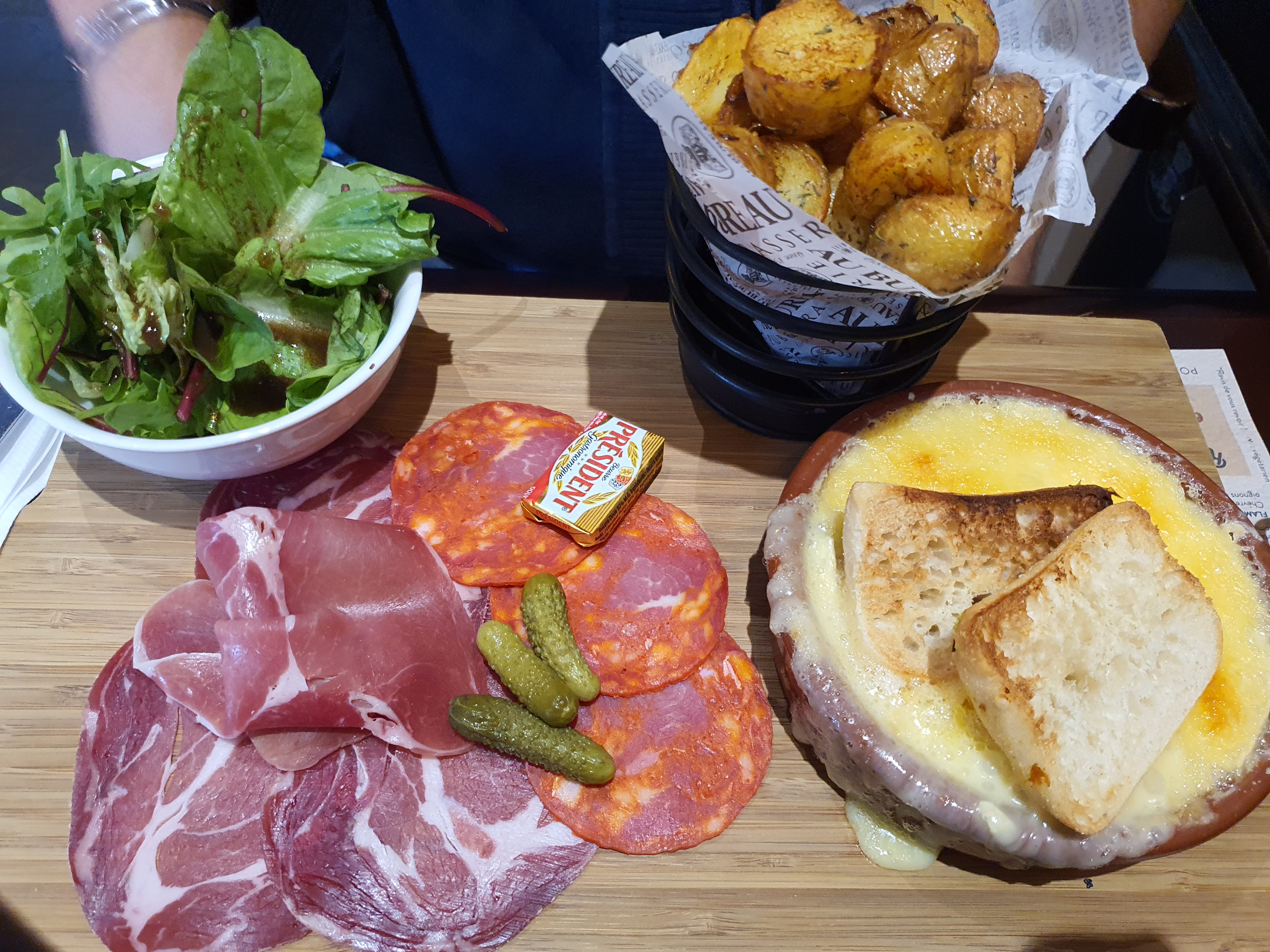 Restaurant de qualité moyenne. Au niveau prix assez cher. Camembert rôti avec pomme de terre et charcuterie 18 €. Le prix pratiquement d une viande. Service très long.