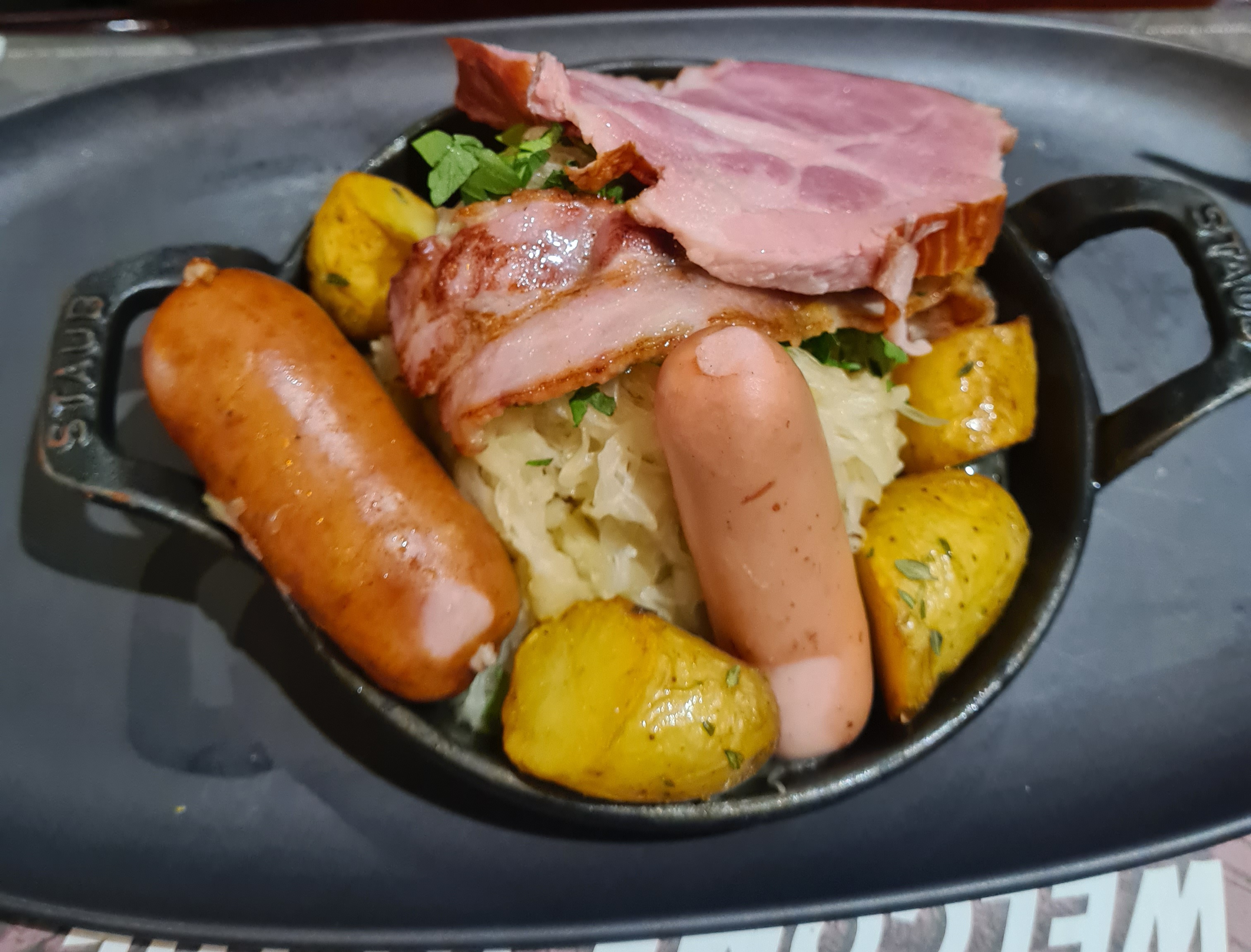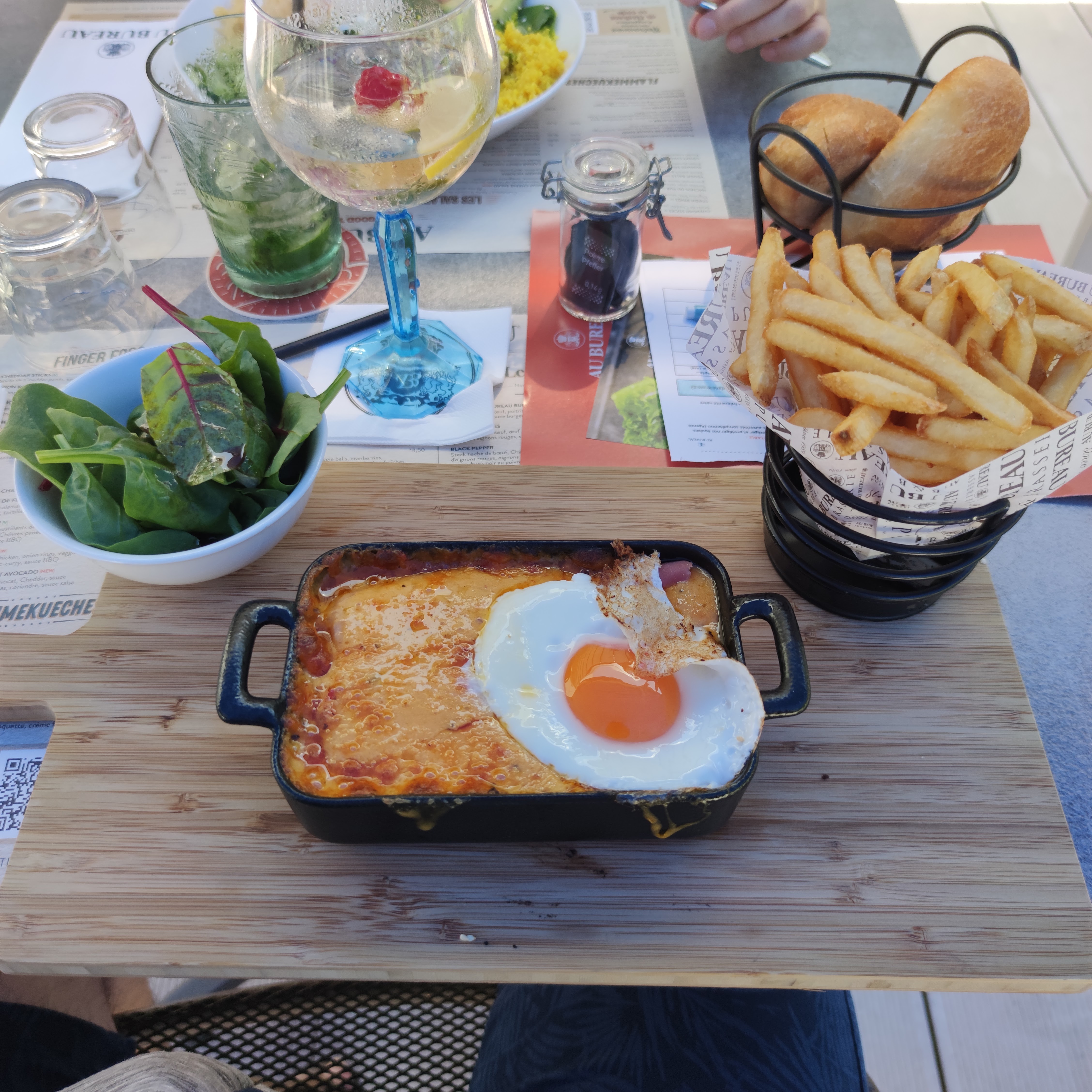 Plats excellents pour les 3 convives que nous étions. Flammeckueche très goûteuse Salade chicken trop bonne Burger délicieux Christophe le serveur, est très professionnel, souriant, aimable et valorise parfaitement le restaurant en proposant plein de bonnes choses afin que l'on consomme mais ça fait partie de son job 😉 Un petit bémol pour la salle qui est relativement bruyante. Félicitations à toute l'équipe au service et en cuisine 👍